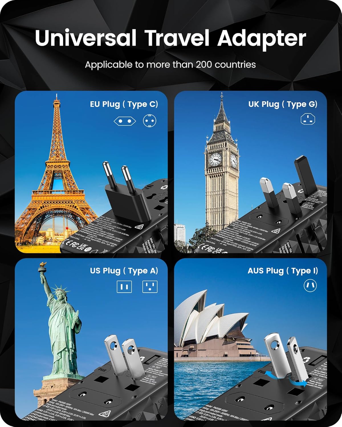 - Multi Safety Protection: Equipped with a 6-point safety system, including overload fuse, fireproof material, and short-circuit protection, this adapter ensures safe charging for all devices, providing peace of mind during your travels