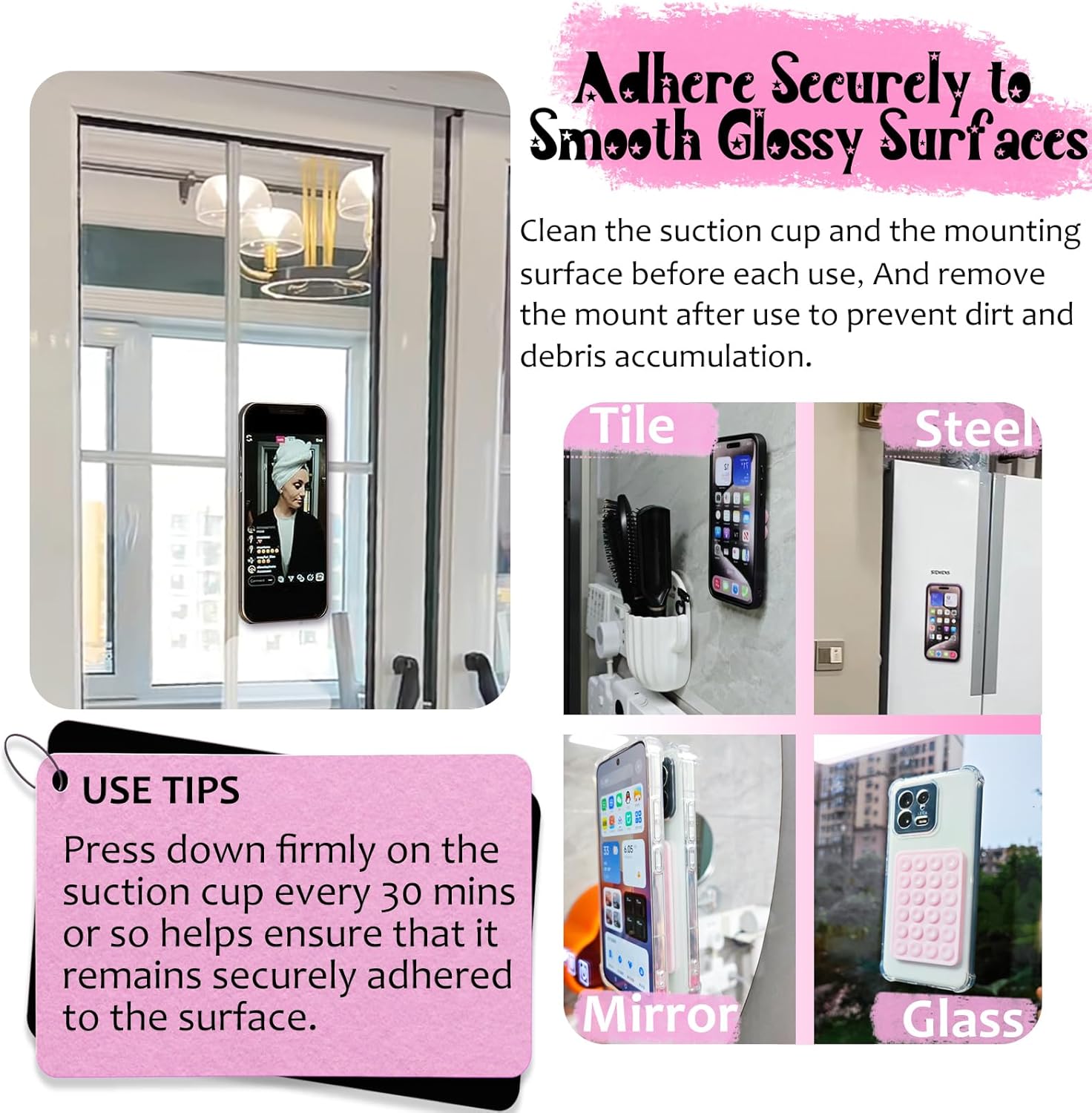 - 【HANDS-FREE & Adhere to Mirrors】This silicone suction phone case adhesive mount allows you to stick your phone to the mirror easily. No longer holding your phone in one hand to watch video tutorials while making up.