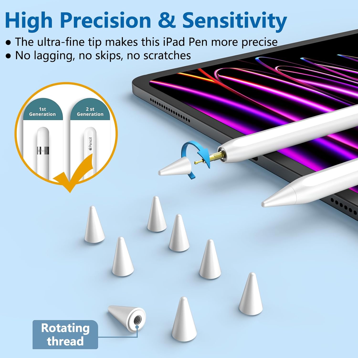 8 Pack Apple Pencil Tips, Replacement Tips Only Compatible with Our KARFUN Pencil, iPencil Nib for iPad Pencil 2018-2023, iPad 10/9/8/7/6 Gen, iPad Pro 11/12.9, iPad Air 5/4/3, iPad Mini 6/5 Gen