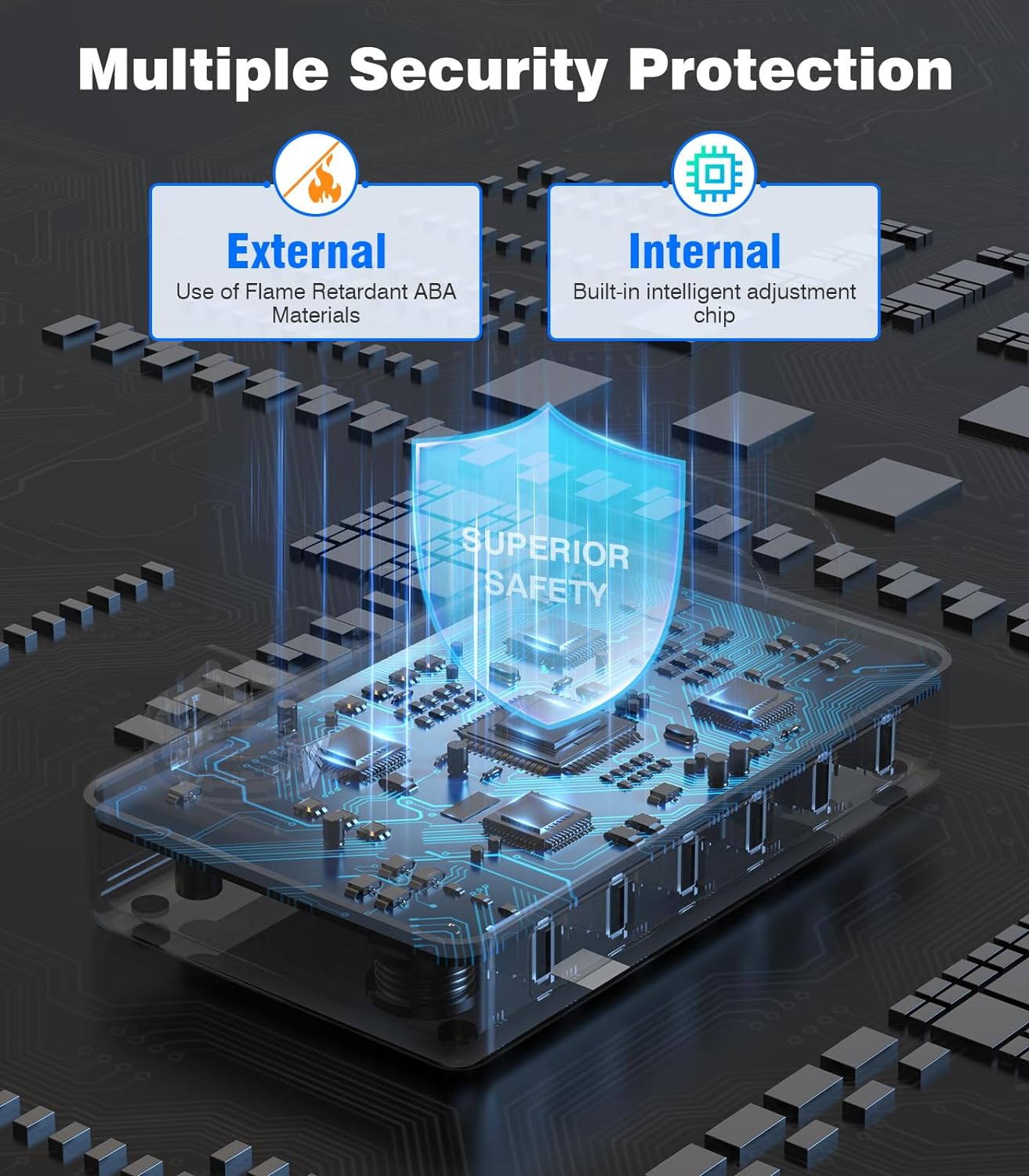 - 【Multi-Security Protection】The multiple usb charging station is made of premium flame retardant ABS material which is highly secure and protective. The phone charging station is equipped with an intelligent chip inside, which will automatically cut off the power when the temperature is too high. With short circuit, overheating and overcharging protection function