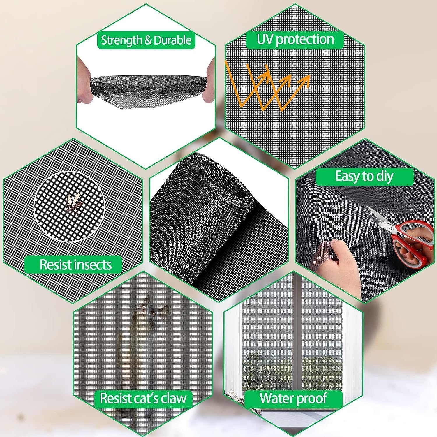 - 【Pet proof window screen replacement】The screen mesh is perfect for various kinds of screen doors, screen windows, sliding door screen, porch screen, patio screen, car window screen, pet screen,cat sliding door and other DIY screening applications.