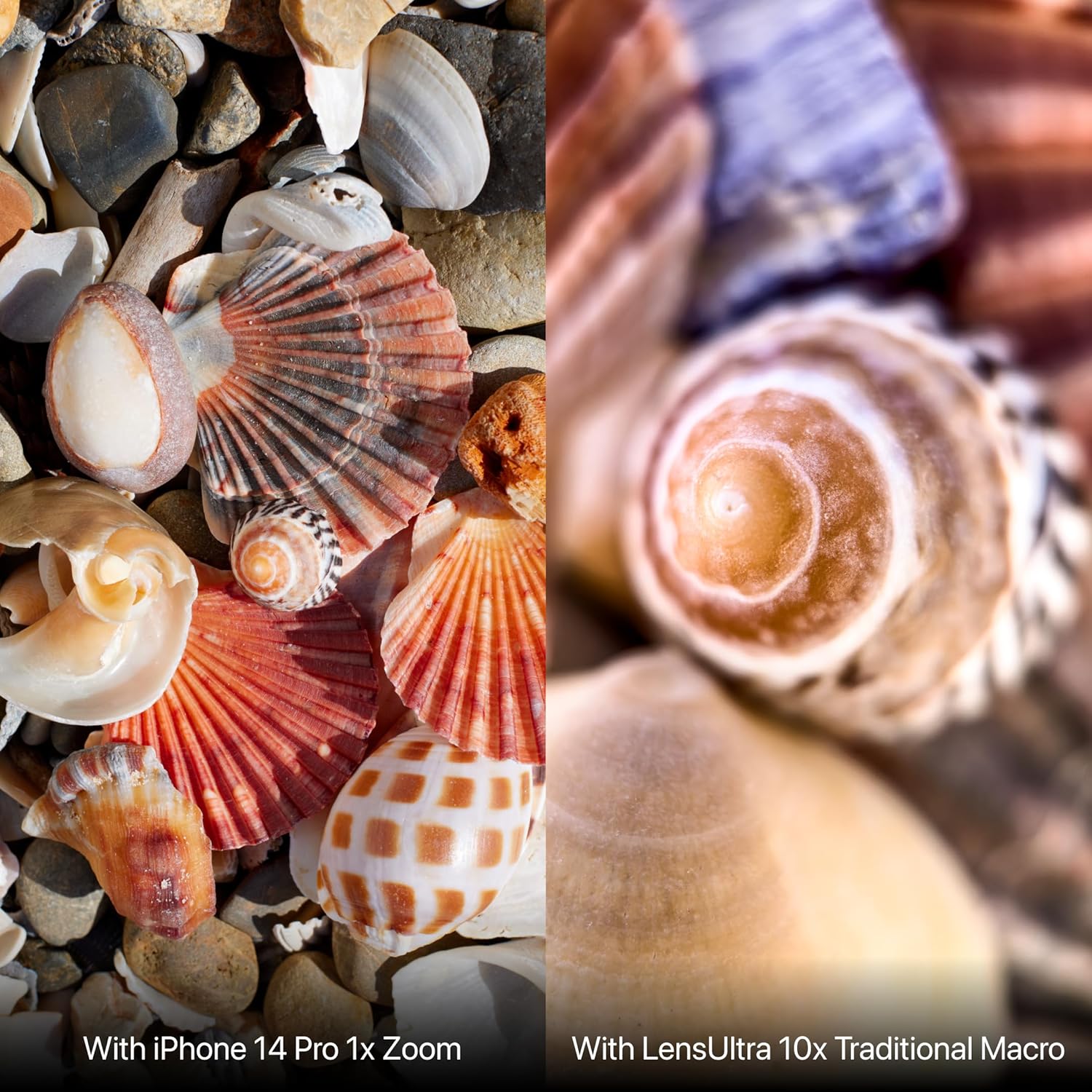 - Unleash Hidden Details: Explore the unseen world with our LensUltra 10X Traditional Macro. From intricate textures to delicate features, achieve 10–25x magnification from as close as 10–15mm away. Perfect for stable subjects, this macro phone camera lens delivers stunning close-up shots that reveal the beauty in the smallest of details.