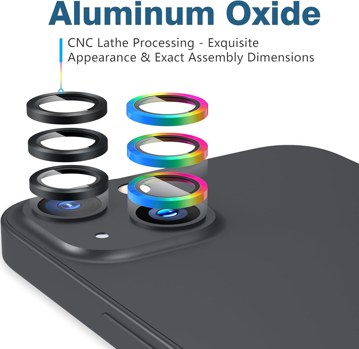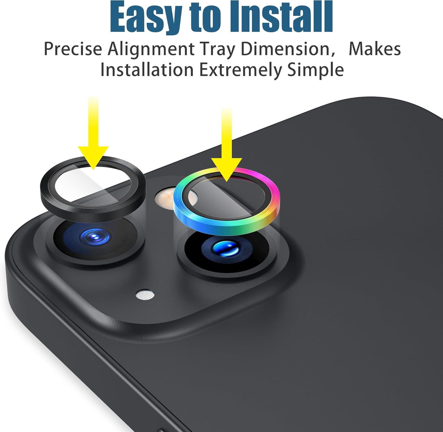 AGVEE 3+3 6 Pack for iPhone 15 6.1" / 15 Plus 6.7" Camera Lens Cover Protector, Metal Ring 9H Tempered HD Glass Camera Cover Protector Film, Black