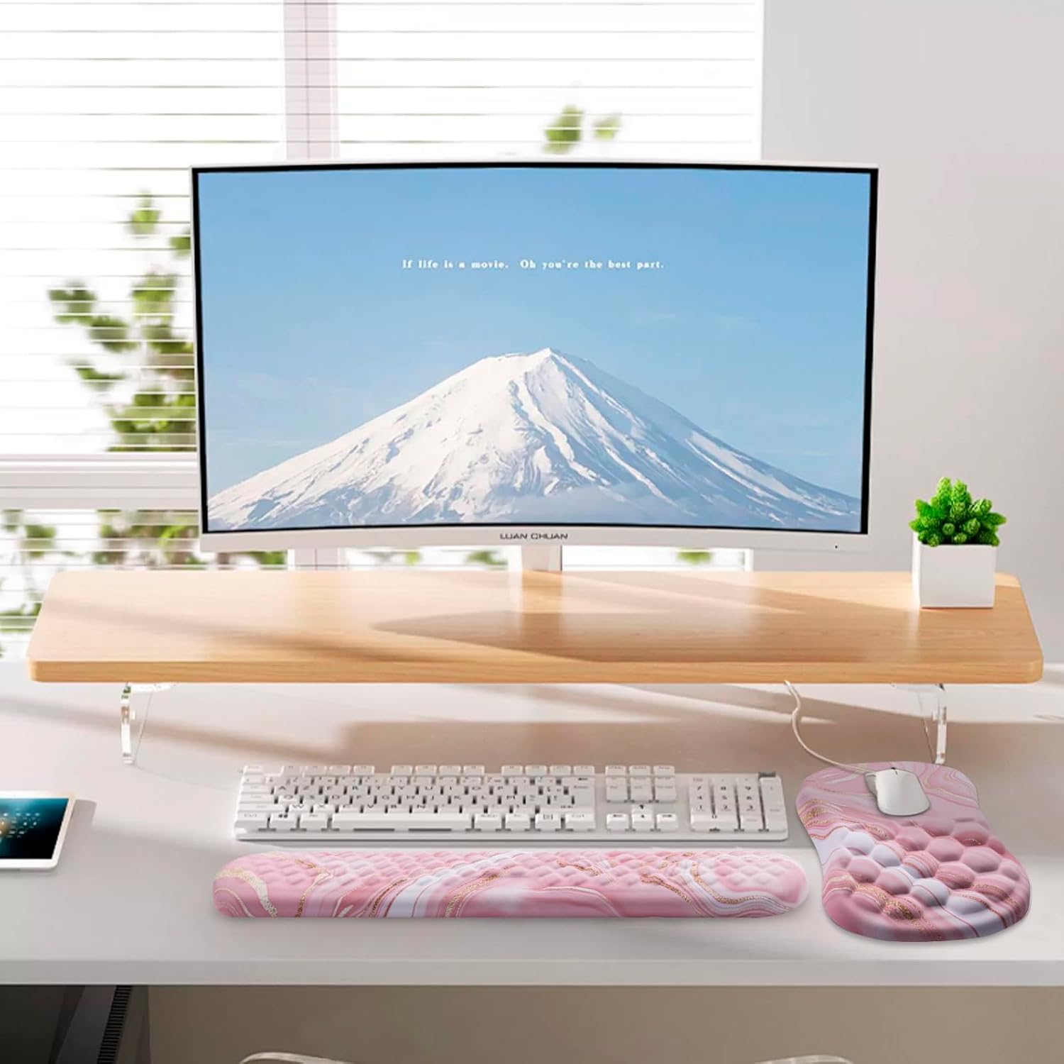 - 【mouse pad wrist support】The surface of our keyboard and mouse pad is made of silky lycra fabric, offering a smooth and skin-friendly experience. Enjoy precise mouse control and easy cleaning with the ability to wash away liquid stains. The high-definition bright print pattern adds a touch of elegance to your workspace.