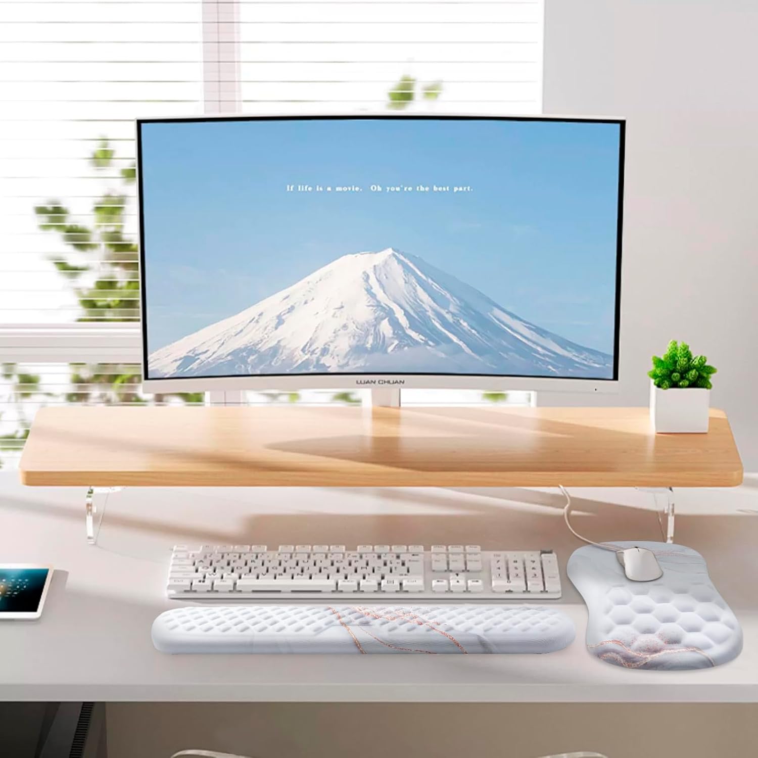- 【mouse pad wrist support】The surface of our keyboard and mouse pad is made of silky lycra fabric, offering a smooth and skin-friendly experience. Enjoy precise mouse control and easy cleaning with the ability to wash away liquid stains. The high-definition bright print pattern adds a touch of elegance to your workspace.