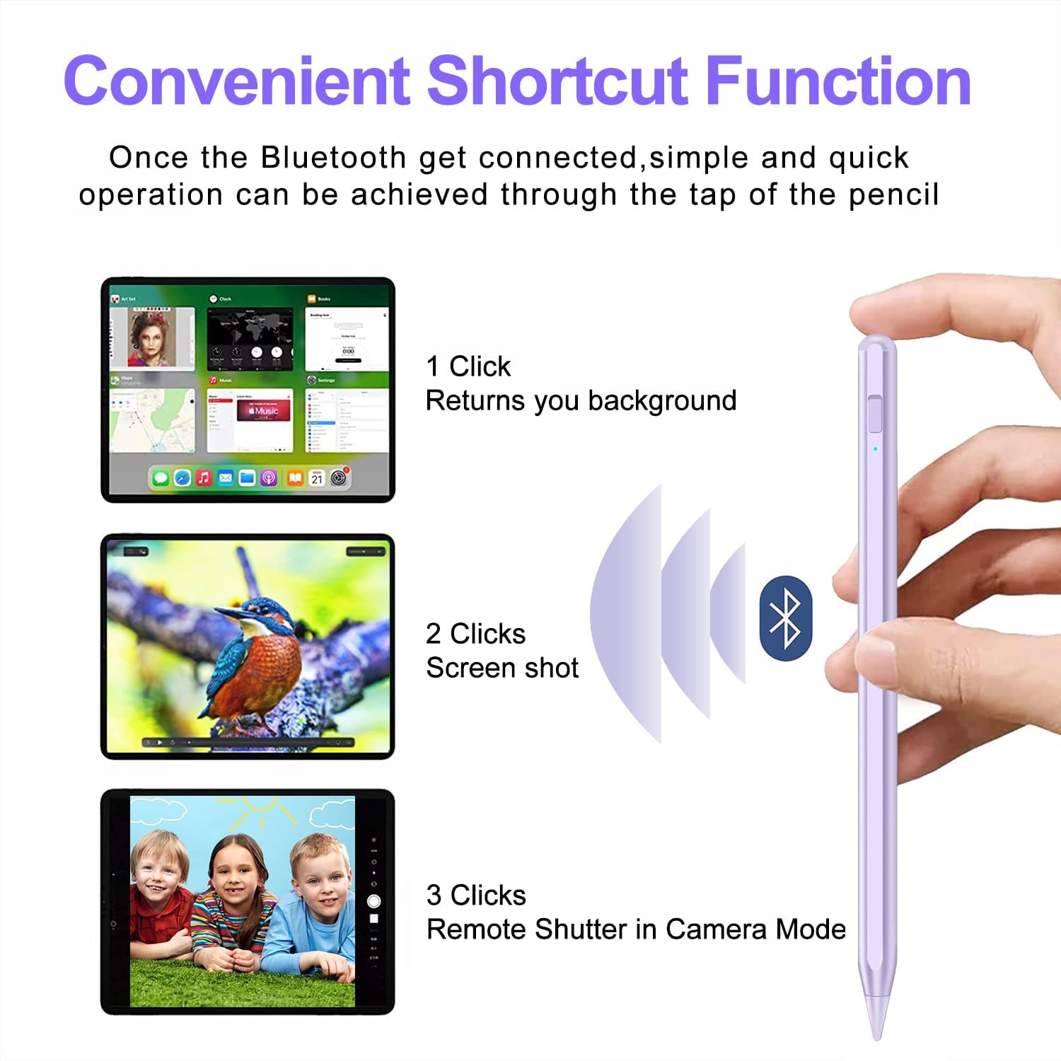 - 【Convenient Shortcut Key Function】Our this upgraded Bluetooth Stylus pen compared to other stylus pens on the market, our stylus pen has a shortcut key function. It is very convenient for children to learn online.Easily pair your pen to your device via Bluetooth, once paired you can click the top button once to wake up the task manager, double-clicking to take a screenshot, three times-clicking to take a photo. Let you use the stylus pen more convenient and faster.