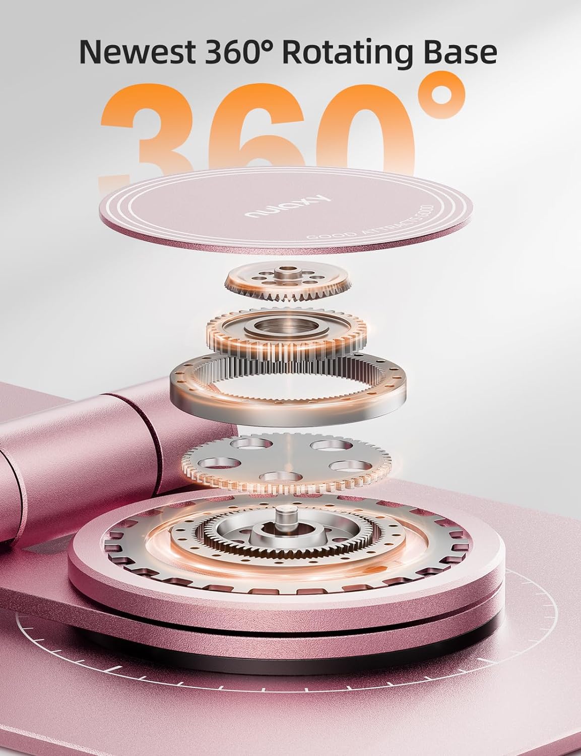 Nulaxy Rotatable Cell Phone Stand, Fully Adjustable Foldable Desktop Phone Holder Cradle Dock, Thick Case Friendly, Compatible with All Phones, Nintendo Switch, Rose Gold