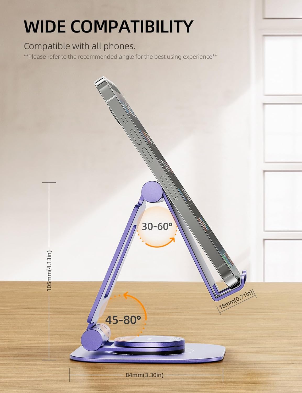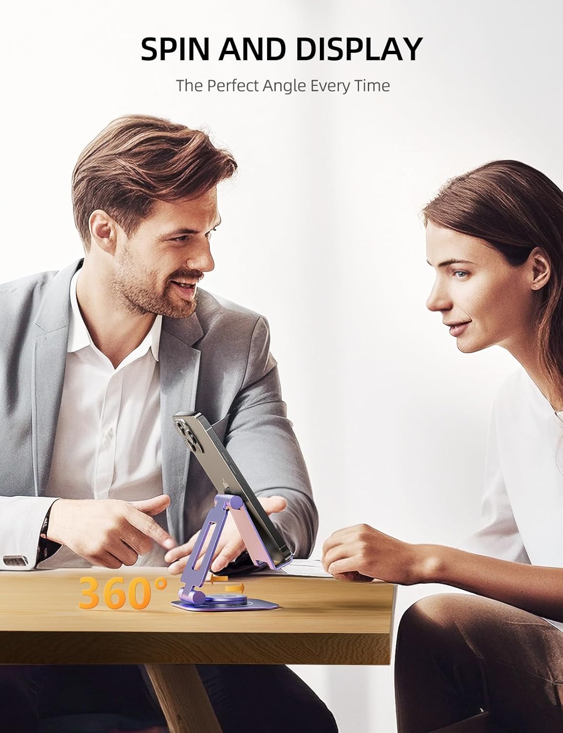 - 360° Rotatable: This phone stand offers a full 360° rotation, allowing you to adjust the viewing angle to your preference effortlessly. Liberates your hands comfort whether you're watching videos, video calling, or sharing your screen.