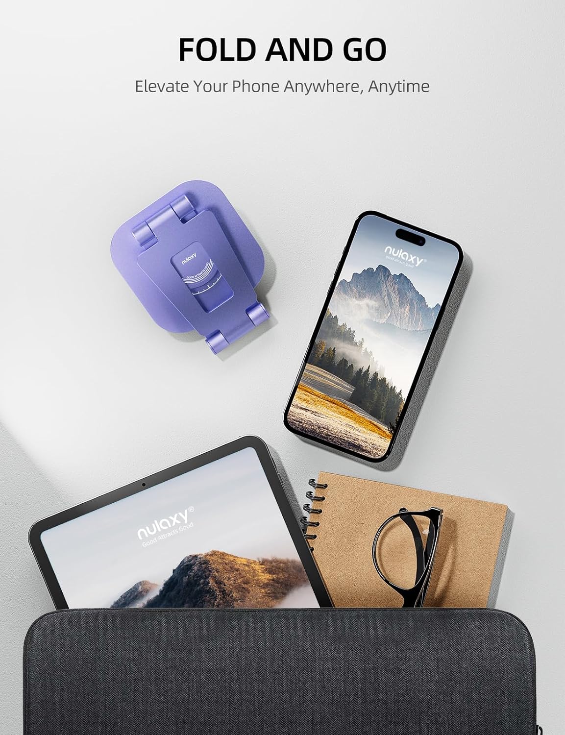 - Find Your Perfect Viewing Angle: With adjustable angles, Nulaxy phone stand for desk ensures optimal comfort for every user. Whether you prefer a vertical or horizontal orientation, find the perfect angle for browsing, reading, or gaming, and enjoy a strain-free experience.