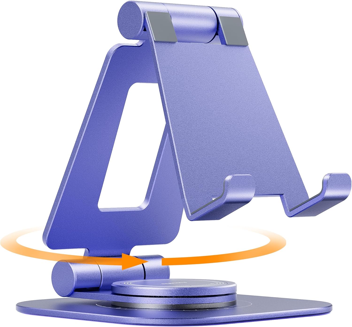Nulaxy Rotatable Cell Phone Stand, Fully Adjustable Foldable Desktop Phone Holder Cradle Dock, Thick Case Friendly, Compatible with All Phones, Nintendo Switch, Purple