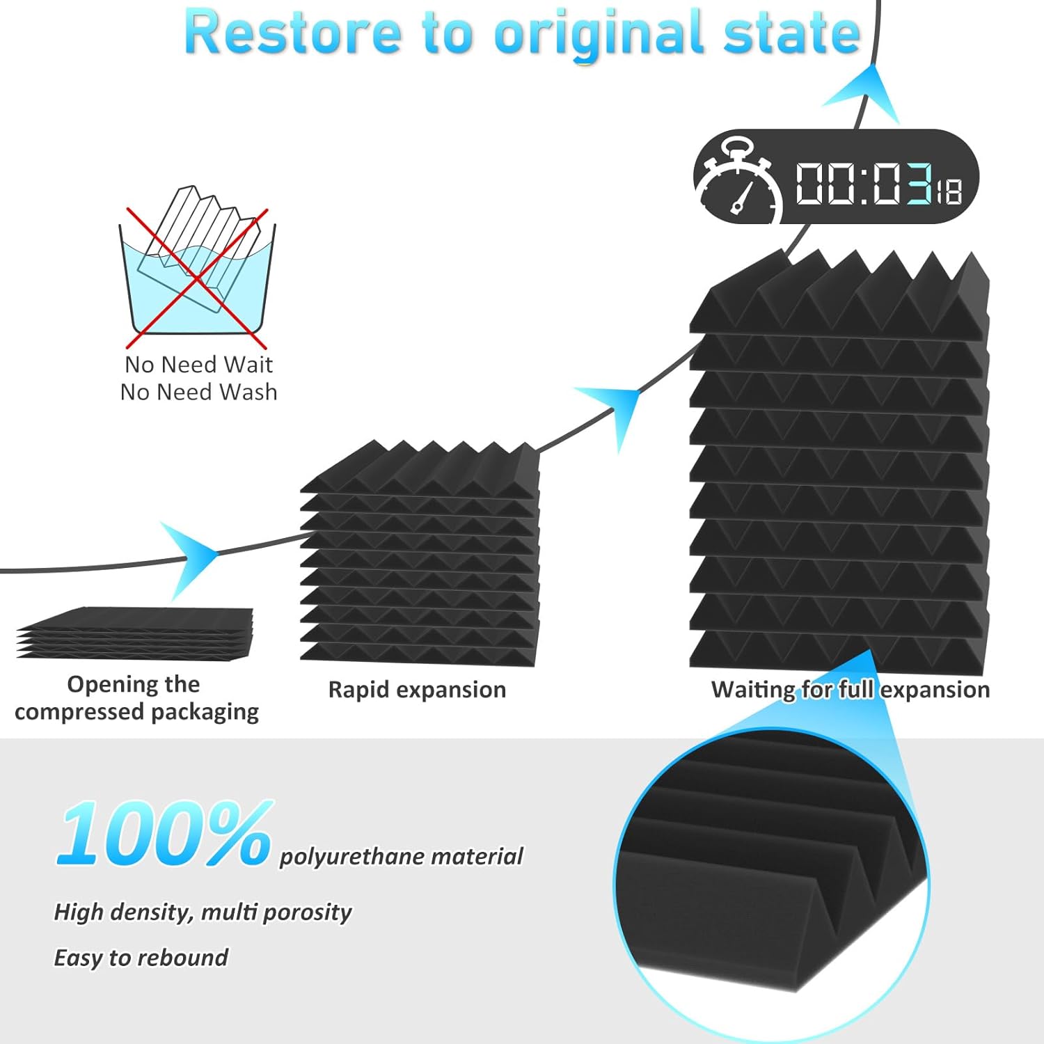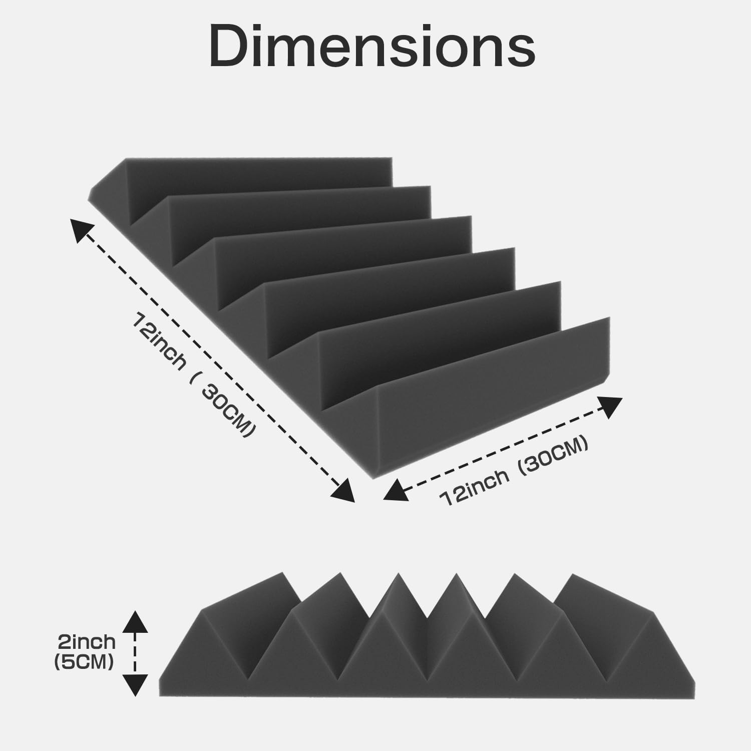 - PROFESSIONAL ACOUSTIC TREATMENT: With high density and thickness (5cm), the acoustic foam panels contain numbers of voids in a wedge-shaped design, can block and slow down the transmission of sound waves, as well as absorbing echoes, reverberations and noises to create a friendly environment.