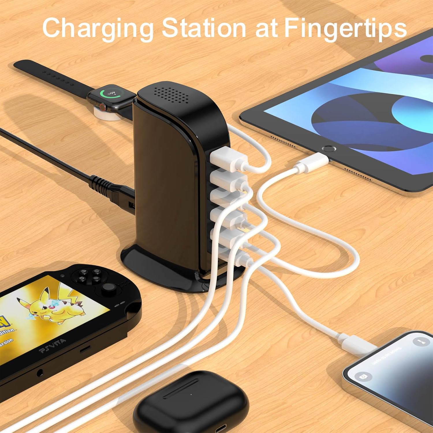- USB tower higher-efficiency: 6 ports total 60W, meet all your charging needs for Android/IOS devices and get rid of superfluous power blocks.