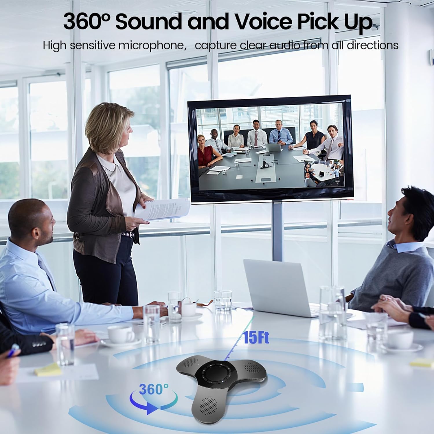 - 360° Voice Pickup: Equipped with an omnidirectional microphone, this conference speaker and microphone captures voices from every angle, allowing for seamless communication and collaboration in conference rooms or home office setups
