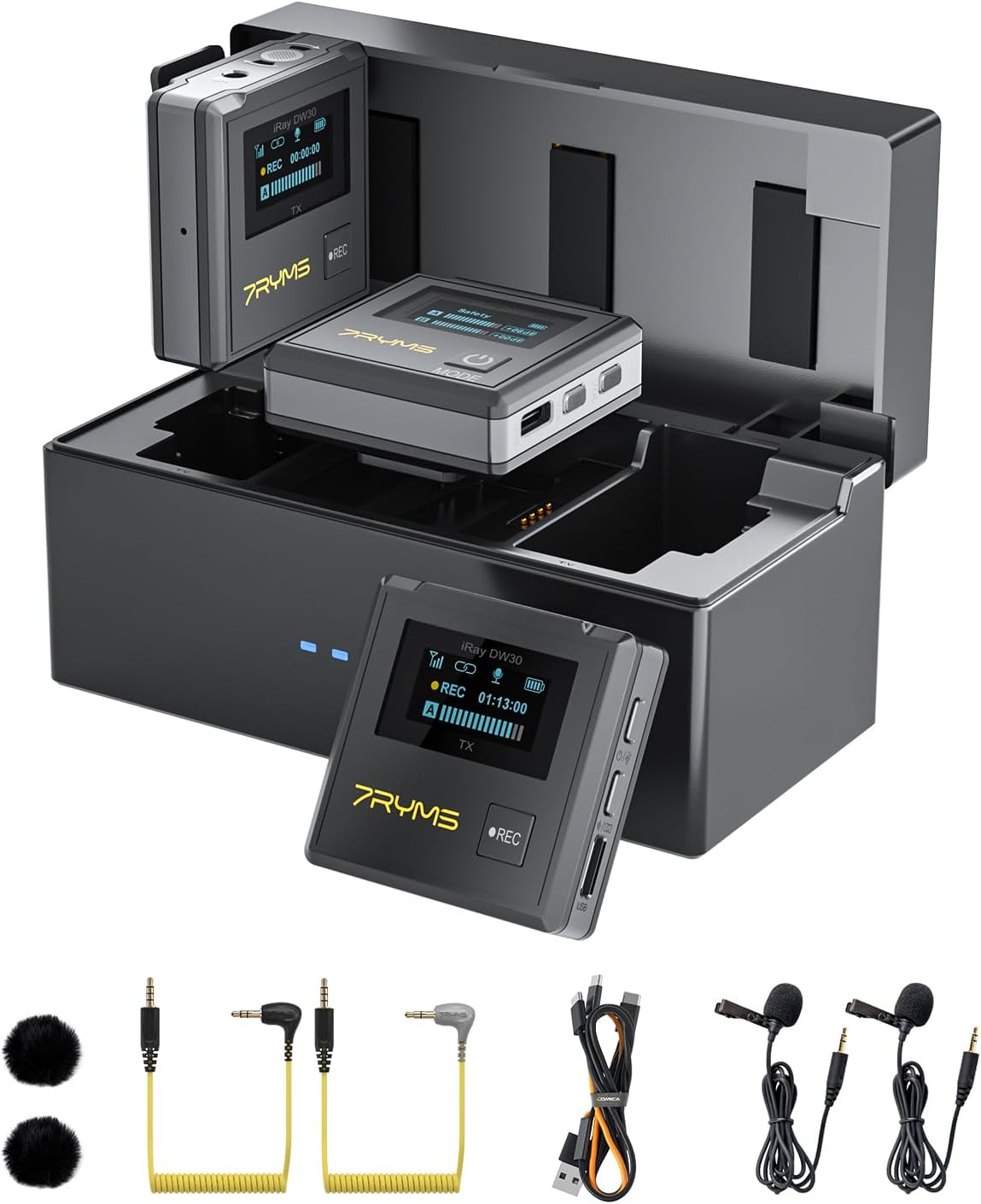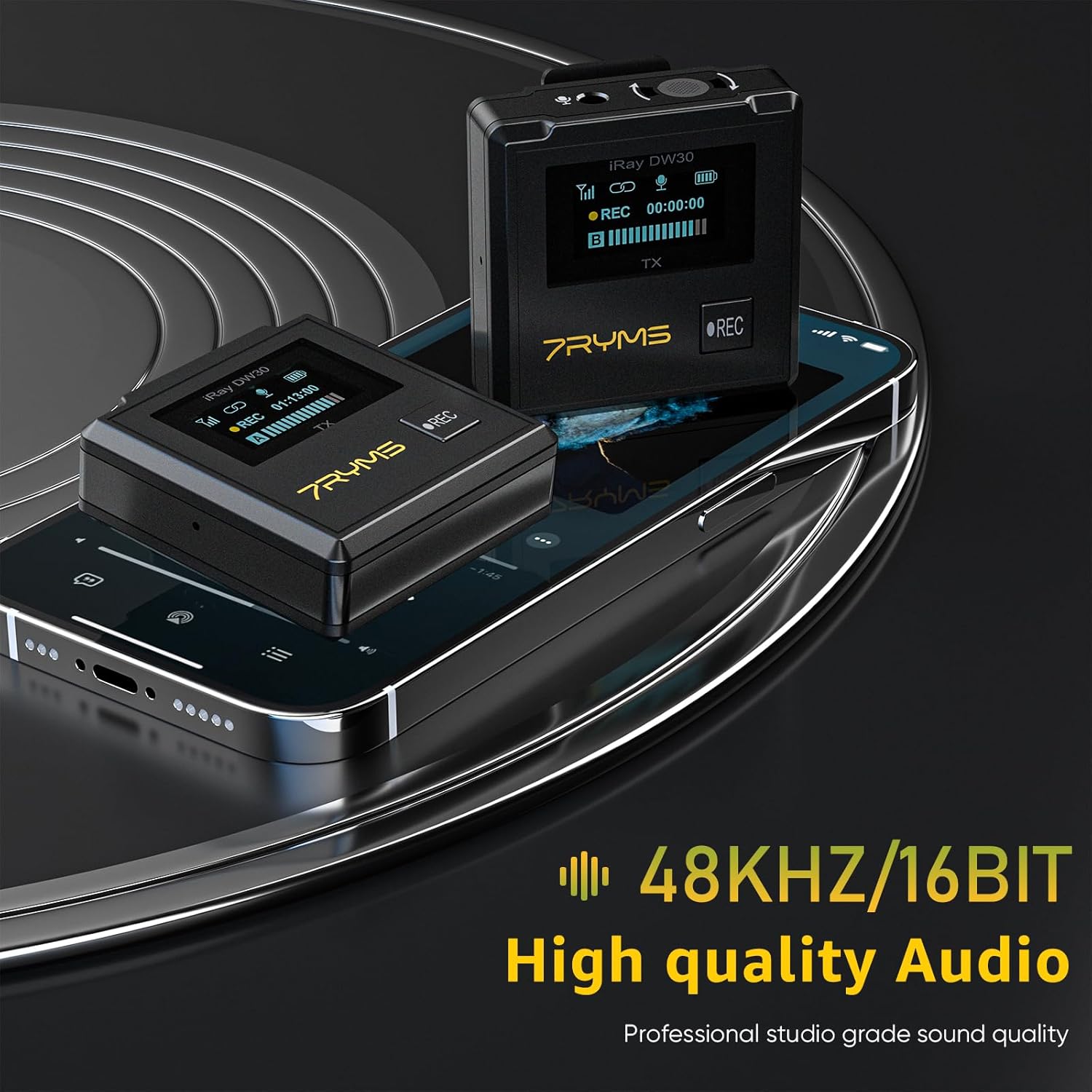 iRay DW30 Wireless Lavalier Microphone with 16GB Internal Recording, Lav Mic Input, USB-C Output, 2.4GHz Wireless Mic for Camera, iPhone, PC - Ideal for Vlogging, Live Streaming, and Video Recording