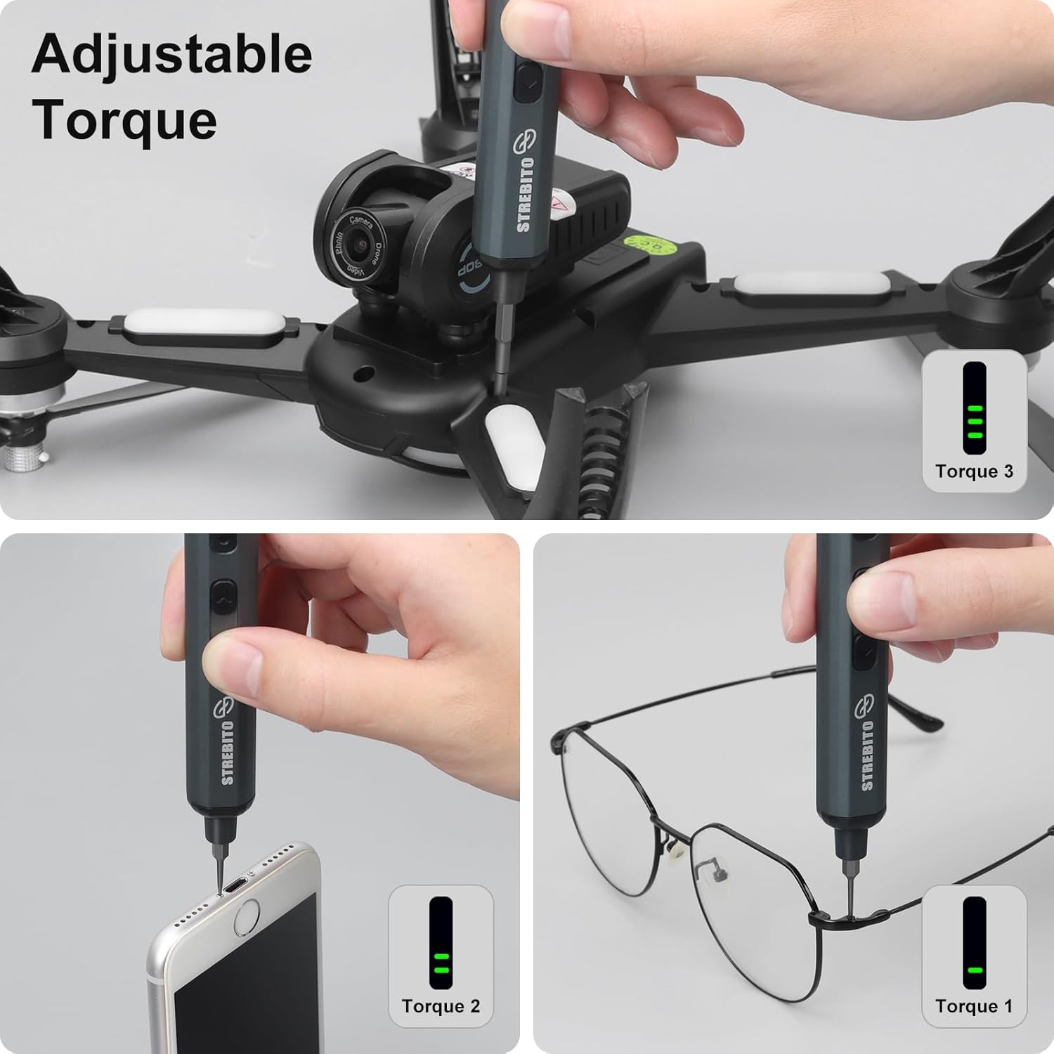 - 【5 Torque Settings】The STREBITO electric precision screwdriver features 5 gear torques ranging from 0.15-0.35N.m, allowing you to adjust the torque precisely to meet various needs. The manual torque of 7N.m gives you increased control for manual screwdriving. With easy torque adjustment and stable torque output, this precision electric screwdriver can satisfy all your demands, includes PC, Computer, Laptop, Cell Phone, Macbook, RC Car, Drone, Keyboard, PS4, PS5, and other electronic devices