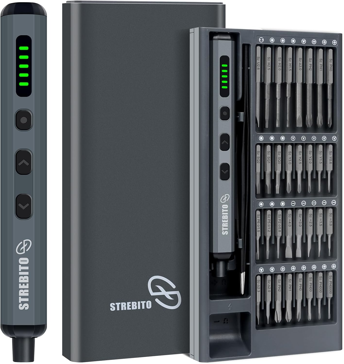 - 【Lifetime Warranty】Comes with a magnetic case to keep each part orderly in place. This electric screw driver features one-click pop-up mechanism and compact size for convenient storage or transportation. Every driver bit is made of high-quality S2 steel with a hardness of up to 60HRC. This electric screwdriver set is covered by STREBITO's lifetime warranty and a 30-day money-back guarantee. If you encounter any issues with your cordless screwdriver, simply contact customer service for help