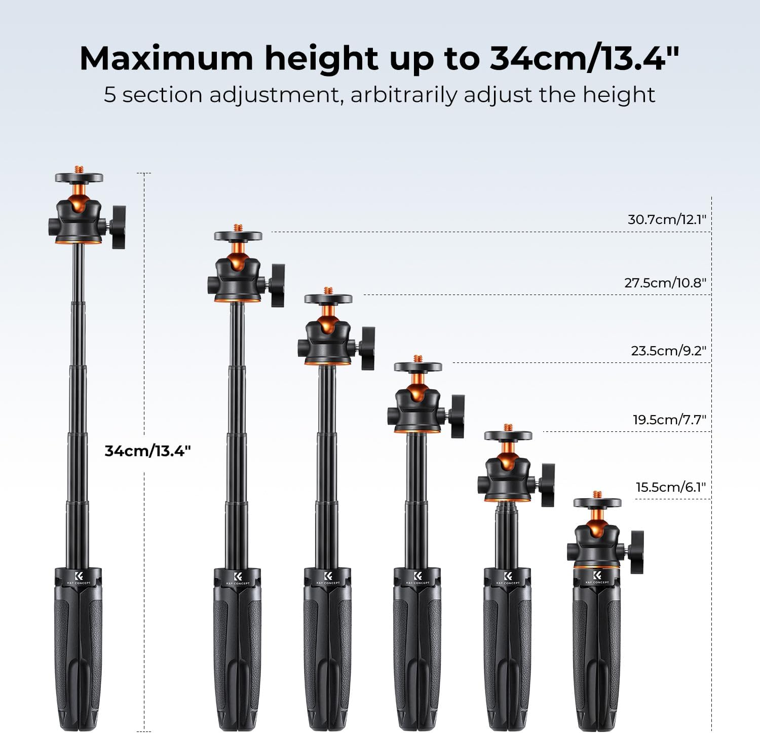 - Extendable & Adjustable: Capture the perfect shot with a flexible height range of up to 34cm. The five-section legs adapt to your preferred shooting position effortlessly, ensuring adaptability to your creativity.