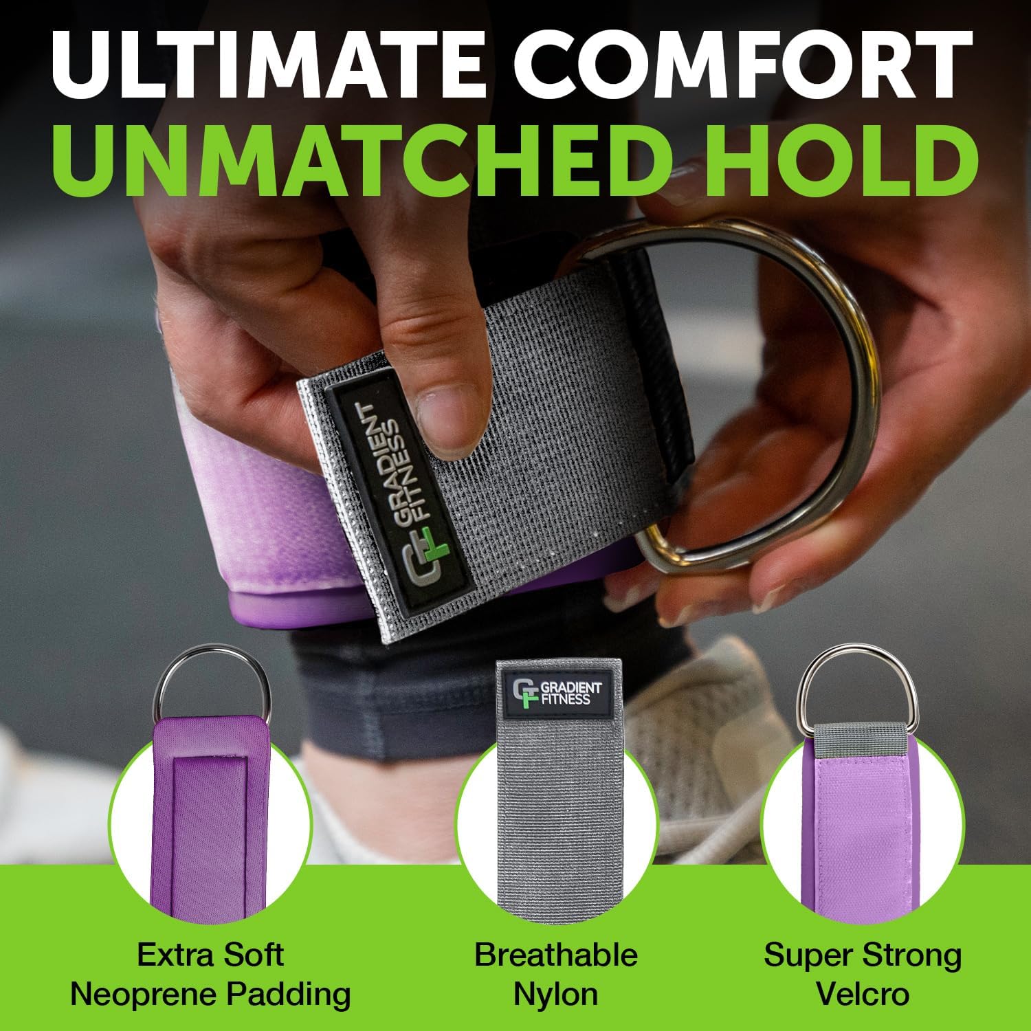 Gradient Fitness Ankle Straps (2 Pack) | Ankle Strap for Cable Machine, Ankle Bands for Working Out, Cable Ankle Strap
