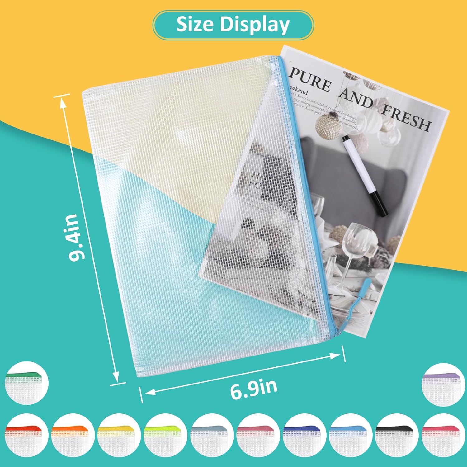 12pcs Mesh Zipper Pouch Bags, A5 Puzzle Bag (12 Colors, 12 Packs) for Organizing, Classroom Must Have Storage Bag, Board Games and Office Supplies