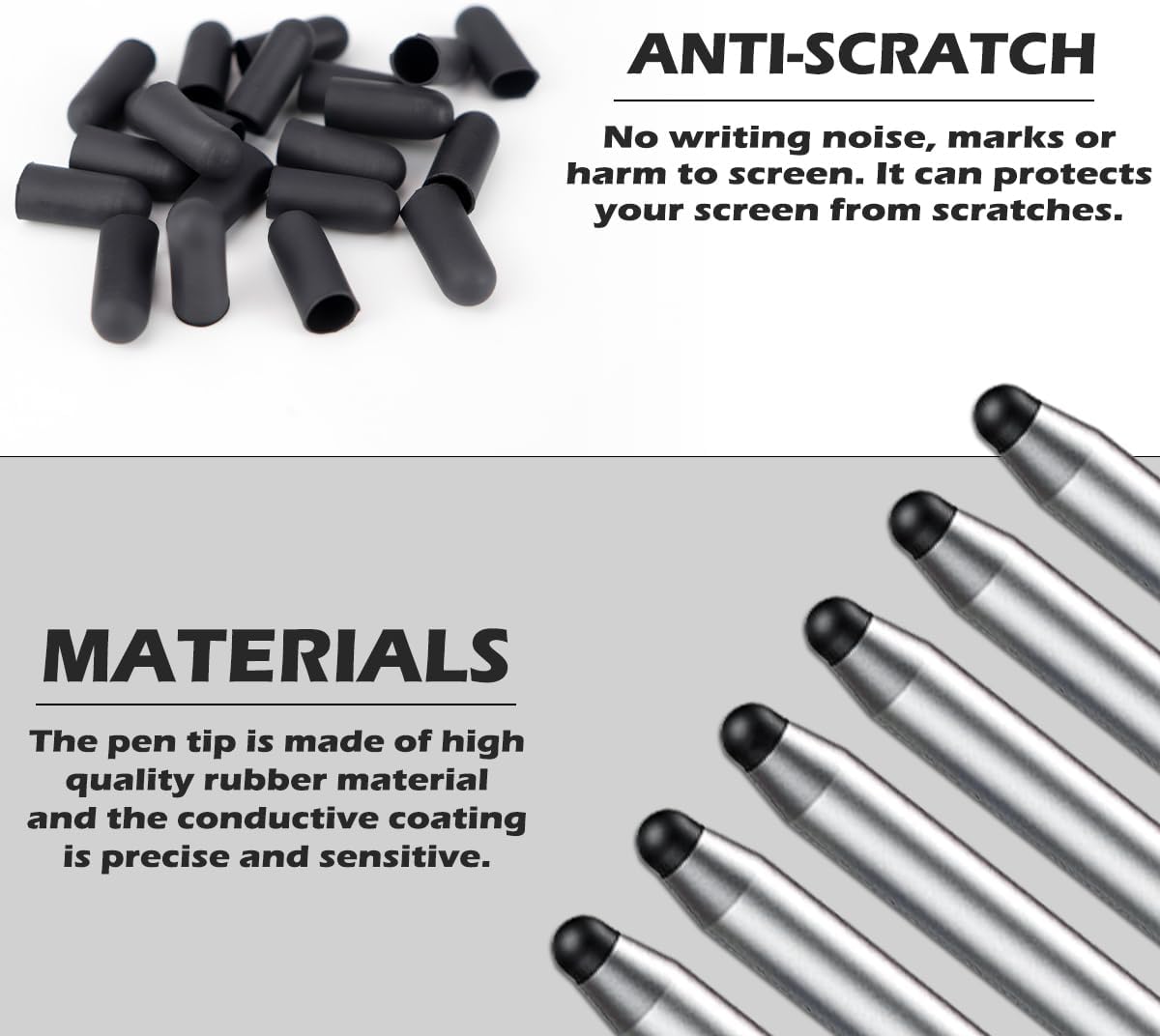 - Good Touch: The tips are made of high quality silicone material that does not make writing noise, scratch the screen surface or leave fingerprints.