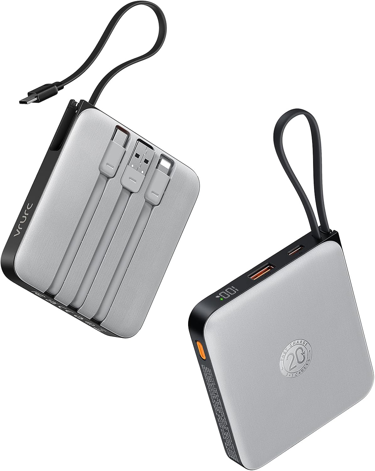 VRURC Portable Phone Charger 4 Built-in Cables, Fast Charging PD 20W Power Bank 10000mAh, USB C Mini Battery Pack for iPhone 16 15 14 Samsung Galaxy S23 Google Android Cell Phones(1 Pack)