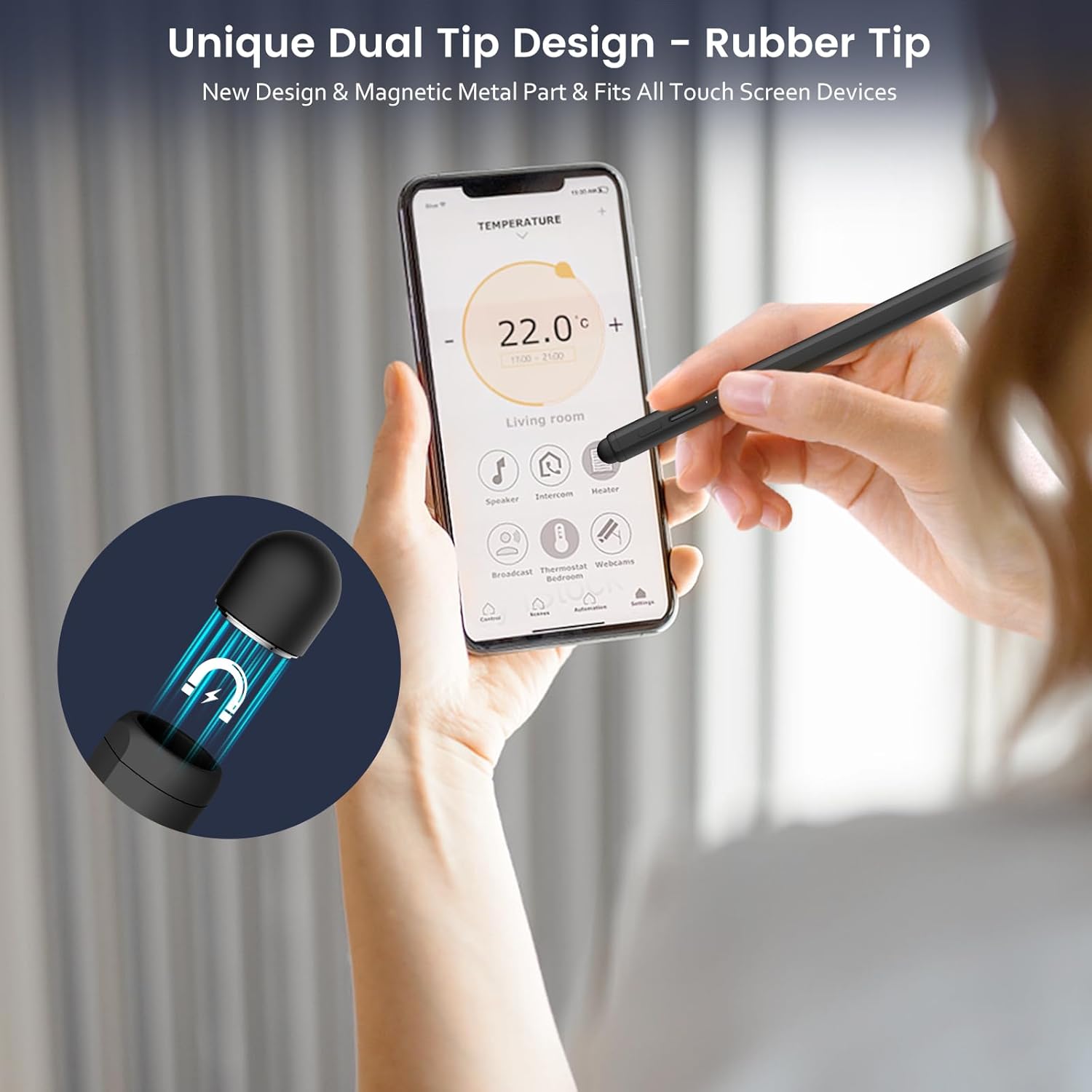 - šćLatest Dual-Tip Stylus - Versatile Rubber TipćThis apple pen represents a novel breakthrough by combining a rubber tip with the active fine tip. It operates seamlessly on any capacitive touchscreen, from smartphones to tablets and smartwatches. When your stylus pen runs out of battery, it serves as the perfect backup. The tip includes a magnetically attachable metal component, making replacement easy and convenient. (Note: The rubber tip is compatible with touchscreens, while the fine tip is designed for iPads.)