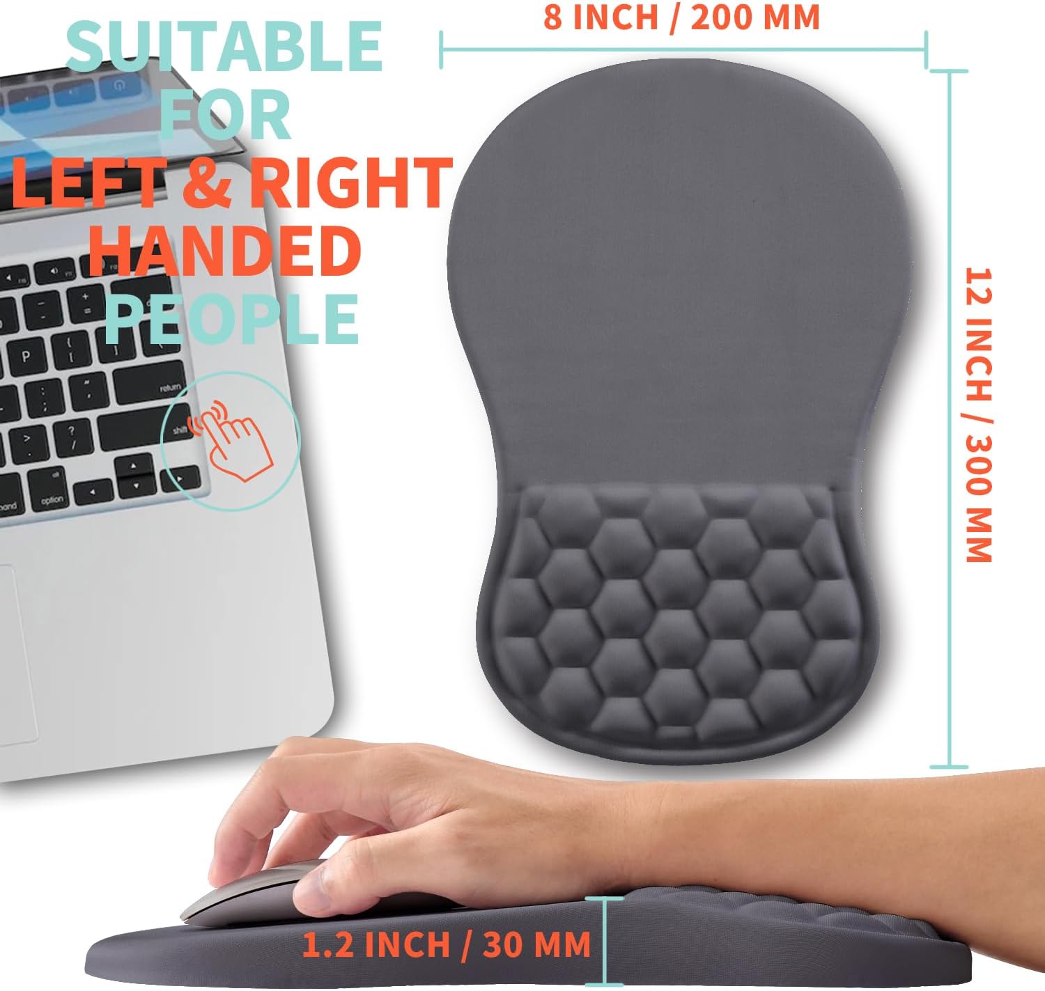 Ergonomic Mouse Pad Wrist Support with Memory Foam Massage Bulge, Carpal Tunnel Pain Relief Mousepad Wrist Rest for Mouse(12x8 inch, Dark Grey)