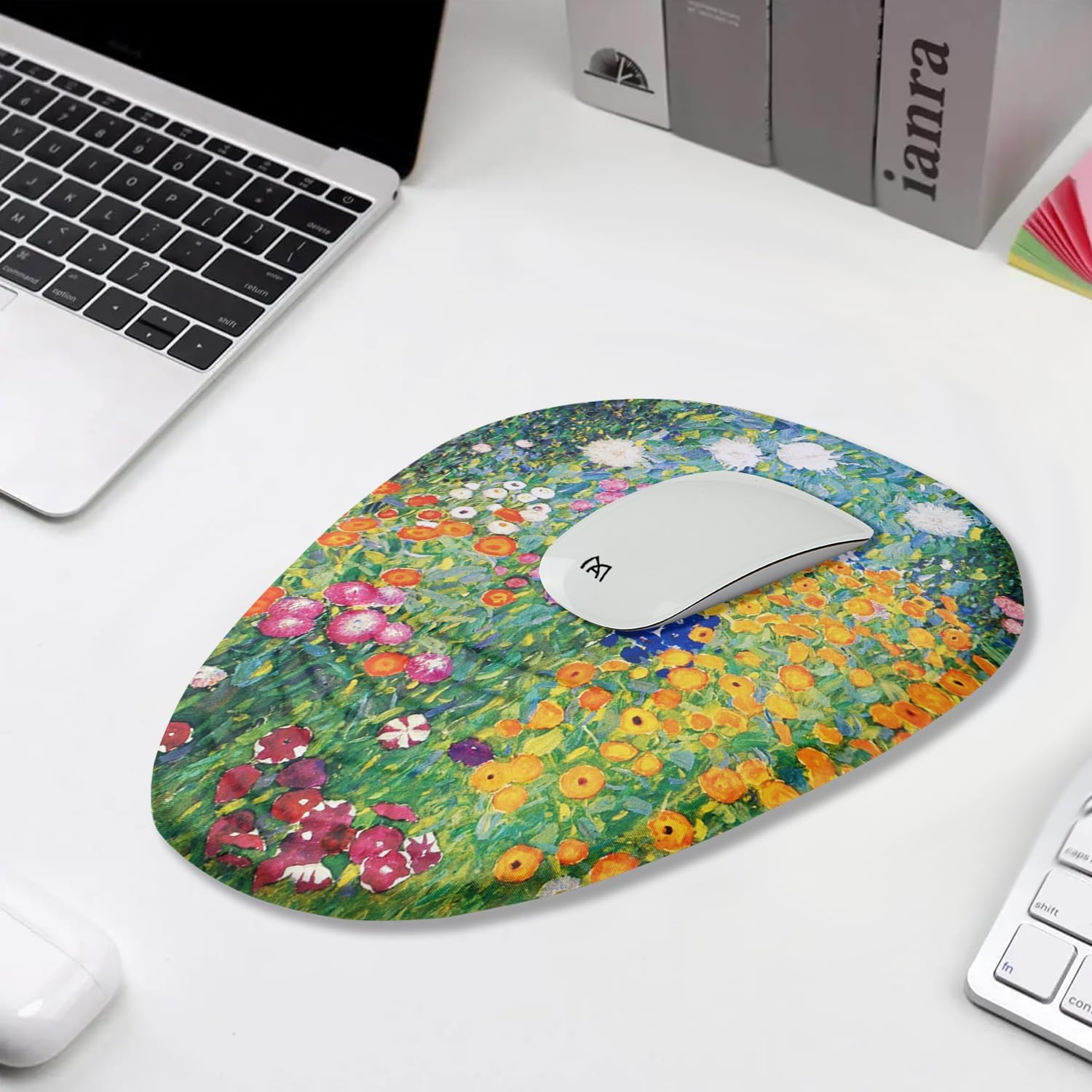 Mouse Pad, Cute Floral Mouse Pad with Wrist Rest Support and Non-Slip PU Base, Ergonomic Mousepad for Pain Relief, Office & Home, Computer, Oil Painting Flowers
