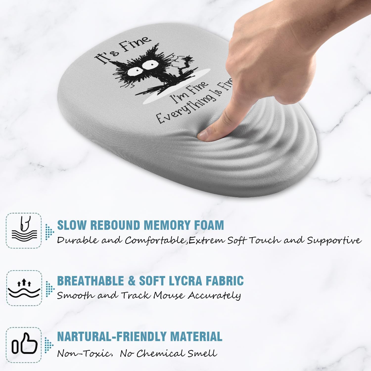 Mouse Pad, Ergonomic Mouse Pad with Wrist Rest Support and Non-Slip PU Base, Desktop Mousepad for Pain Relief, Computer, Office & Home, Grey Cat I'm Fine