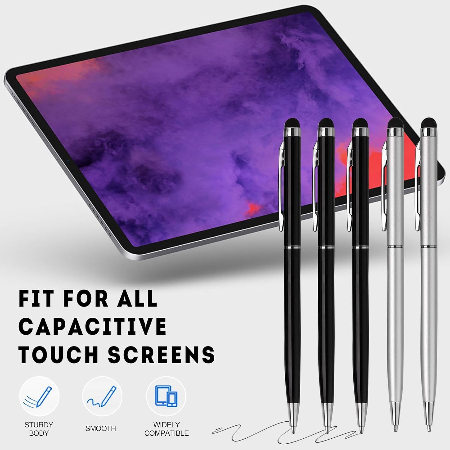 - Muti-use and Convenient: 2 in 1 Design Stylus Pens, Slim and Lightweight,One side contains sensitive stylus for touch screens,One side the black ink ballpoint pen on the other side for convenient writing,Smooth and long lasting ink flow