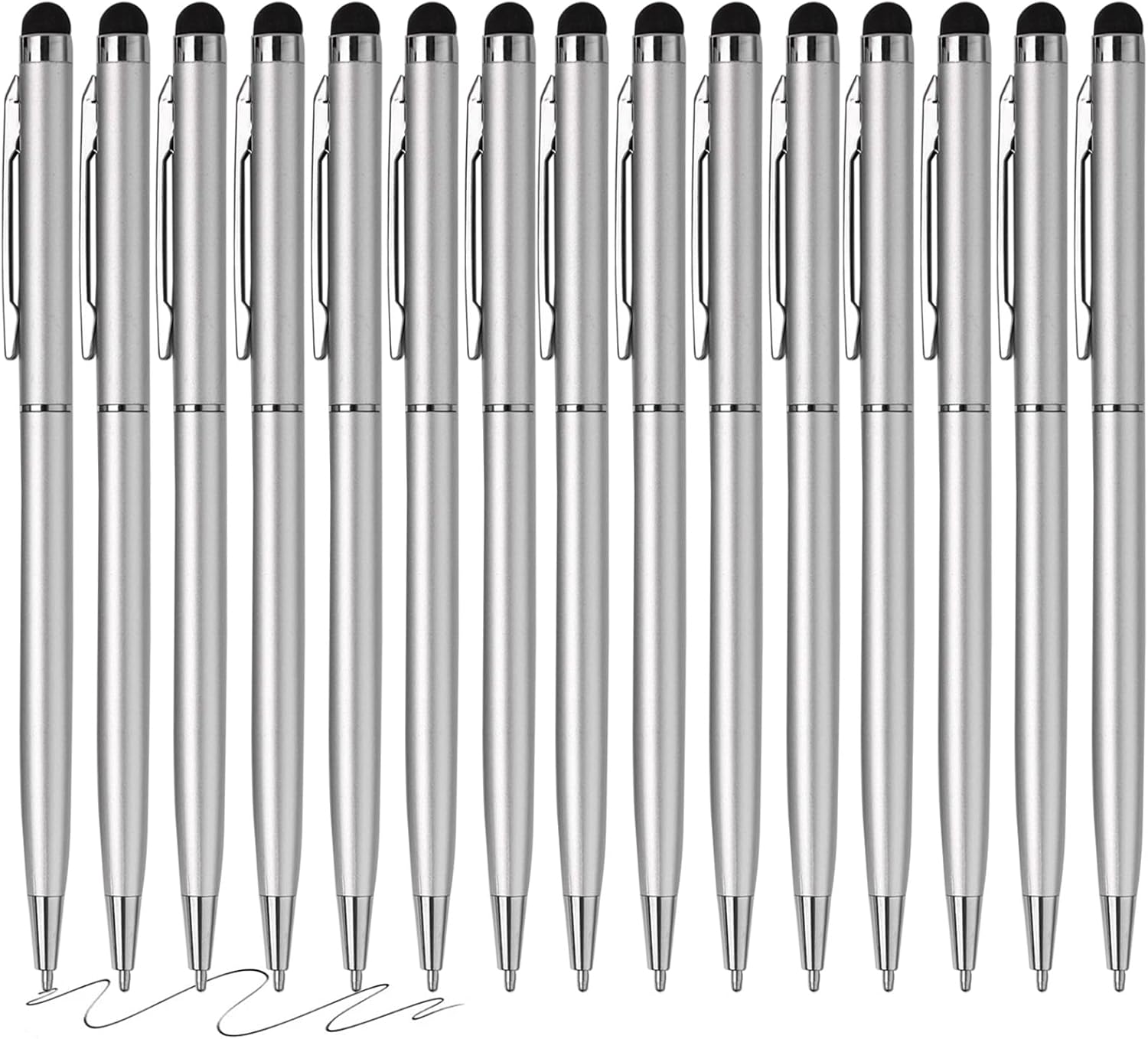 15 Pack Stylus Pens for Touch Screens Stylus Pen Compatible with Phone Tablets Kindle and Black Ink Ballpoint Pens-2 in 1 Stylists pens for Touch Screens (Silver)