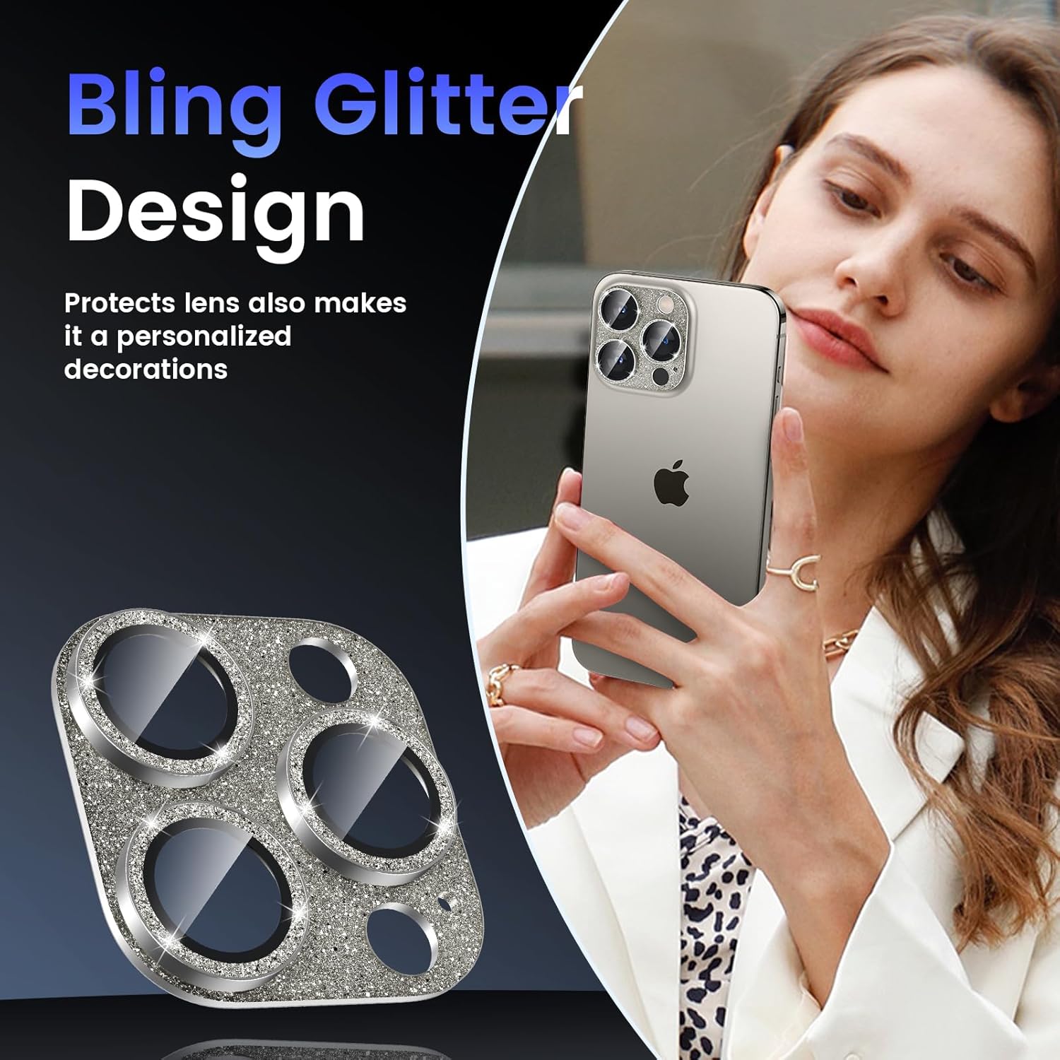 - Glitter Texture: Upgraded tempered glass camera screen protector cover built-in 3 single metal ring protector, which bling glitter reflects fascinatingly. It protects lens also makes it personalized decorations. Many colors are available for you to choose