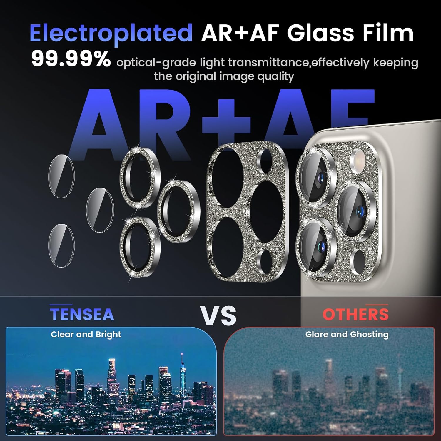 - Compatibility: Tensea rear camera protector made by 9H tempered glass and aluminum alloy is designed for iPhone 15 Pro 6.1 inch/iPhone 15 Pro Max 6.7 inch with THREE camera lens. The protector de camara full covers your phone lens
