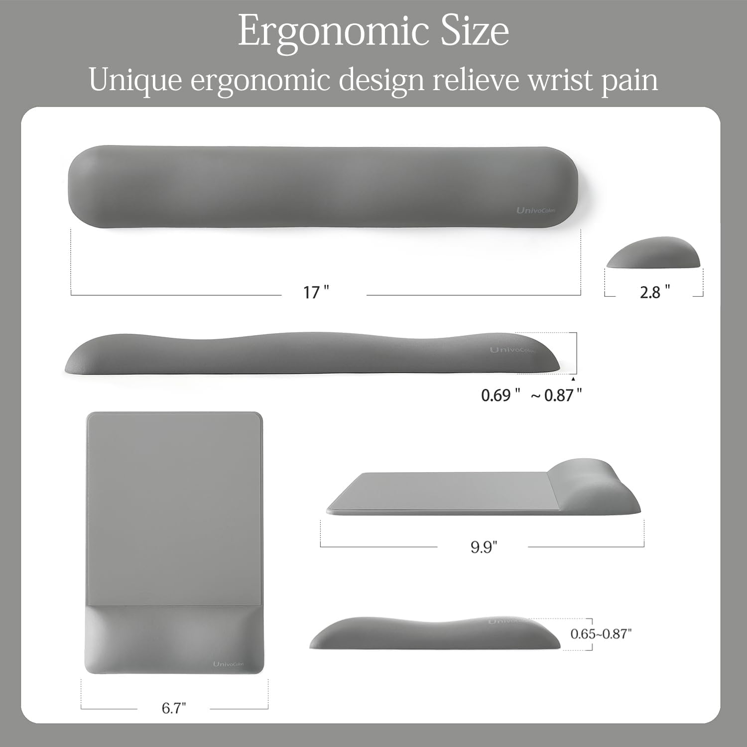 - [Ergonomic Wave Design]: Designed with a wave-like contour, this set of keyboard wrist rest and mouse pad perfectly adapts to the natural movement of your wrists, ensuring optimal support and reducing strain, fatigue, and discomfort.Non-slip rubber base keeps the pad firmly in place, without worrying about it moving or slipping.