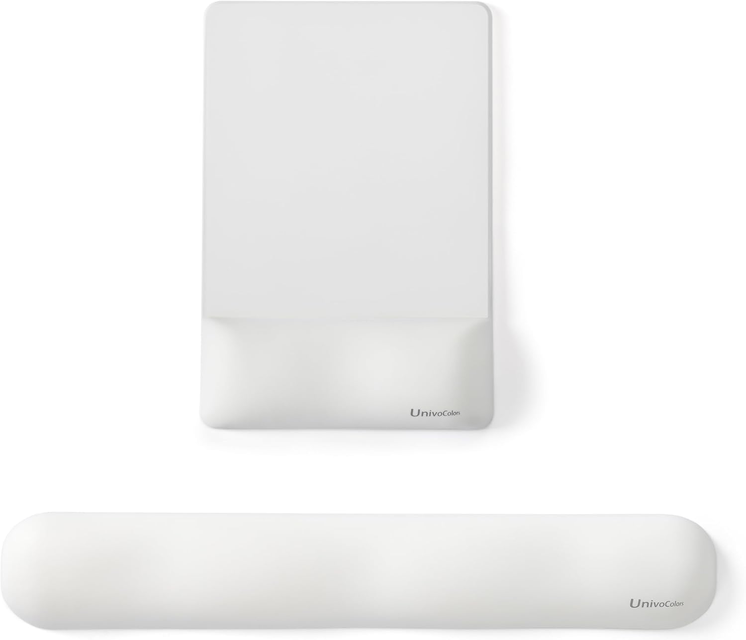 UnivoColors Design-Wave Set of Keyboad Wrist Rest & Mouce Pad,Artificial Sheepskin+Memory Foam+Ergonomic+Anti-Slip Gel, Resilience Support During Work and Gaming,Keyboard Accessory,White