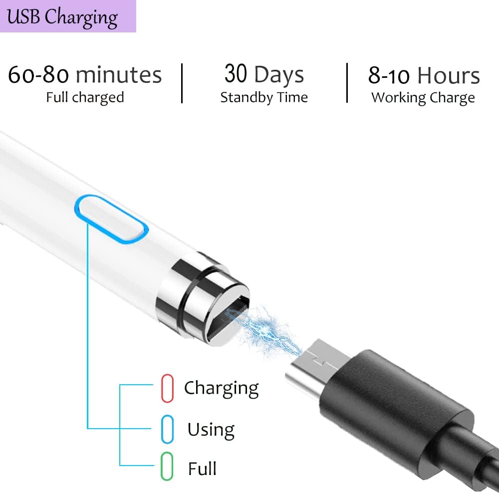 - 【Long-lasting battery life】 This iphone stylus battery last a long time and doesn't take long to charge. The built-in battery can provide 8-10 hours of use time, and use Micro USB can be fully charged in 60-80 minutes. At the same time the rechargeable pen has intelligent power saving function to protect battery life