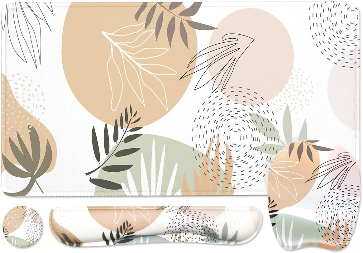 Keyboard Wrist Rest Large Mouse Pad Wrist Support for Computer, 4 in 1 Memory Foam Keyboard Pad Desk Mat Ergonomic Hand Rest Wrist Cushion for Home Office Gaming - Minimalist Plant