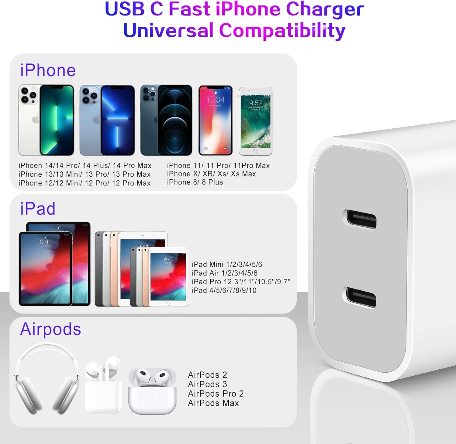 - ăDual Port USB C Apple iPhone Fast ChargerăDual Port USB C iPhone Charger Fast Charging Block With the Latest PD Fast Charging Technology,Dual Port USB-C iPhone 14 13 Fast Charger With 6FT USB C to Lightning Cable Cord Charge your Device Up to 3X Faster than Original 5W Charger.The Dual Port USB C iPhone Wall Charger Adapter has Built-in Protection to Protect your Device from overcurrent,and over Charging.