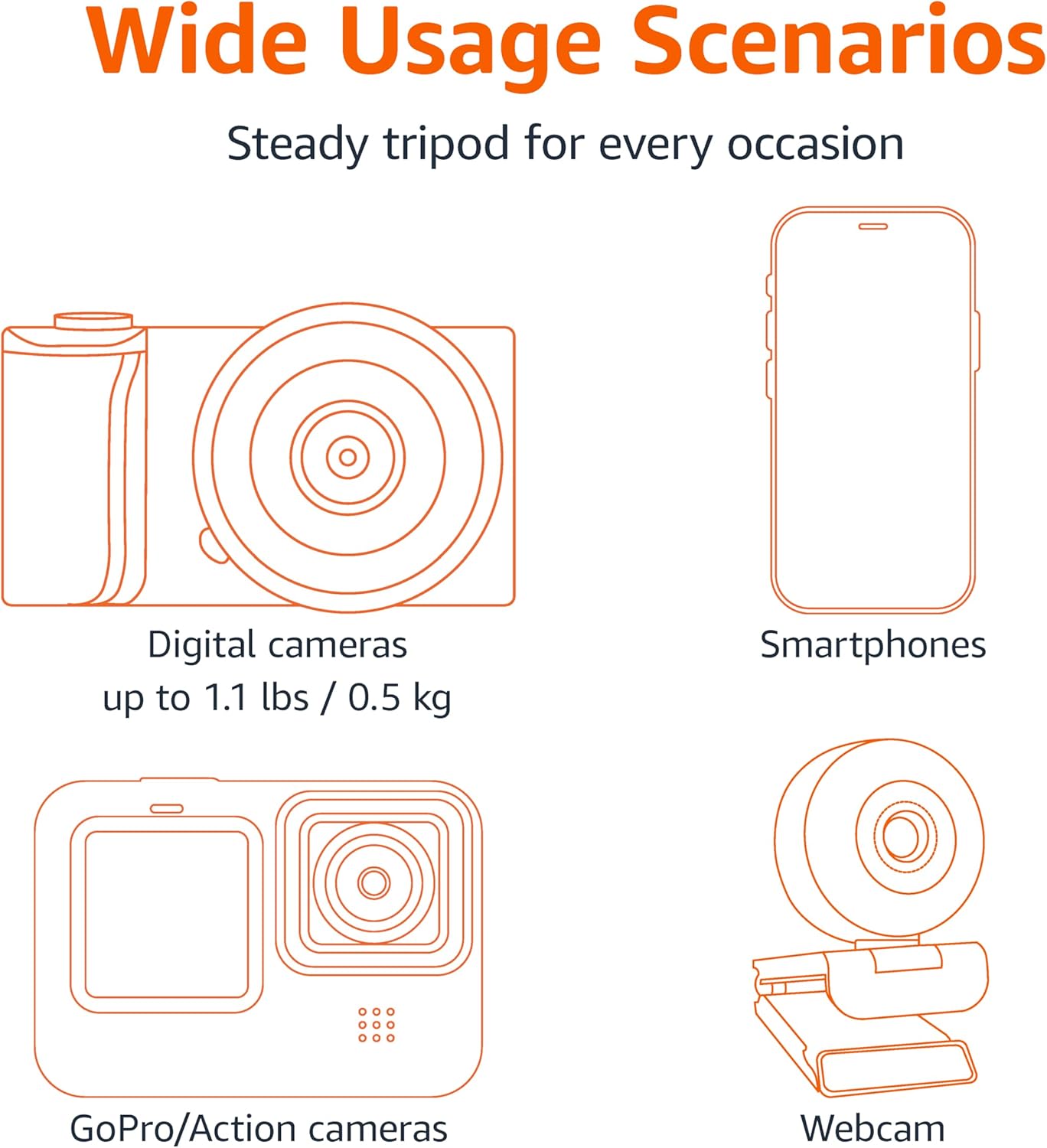 - Universal compatibility with smartphones up to 3.7 inches wide, GoPros, digital cameras and webcams