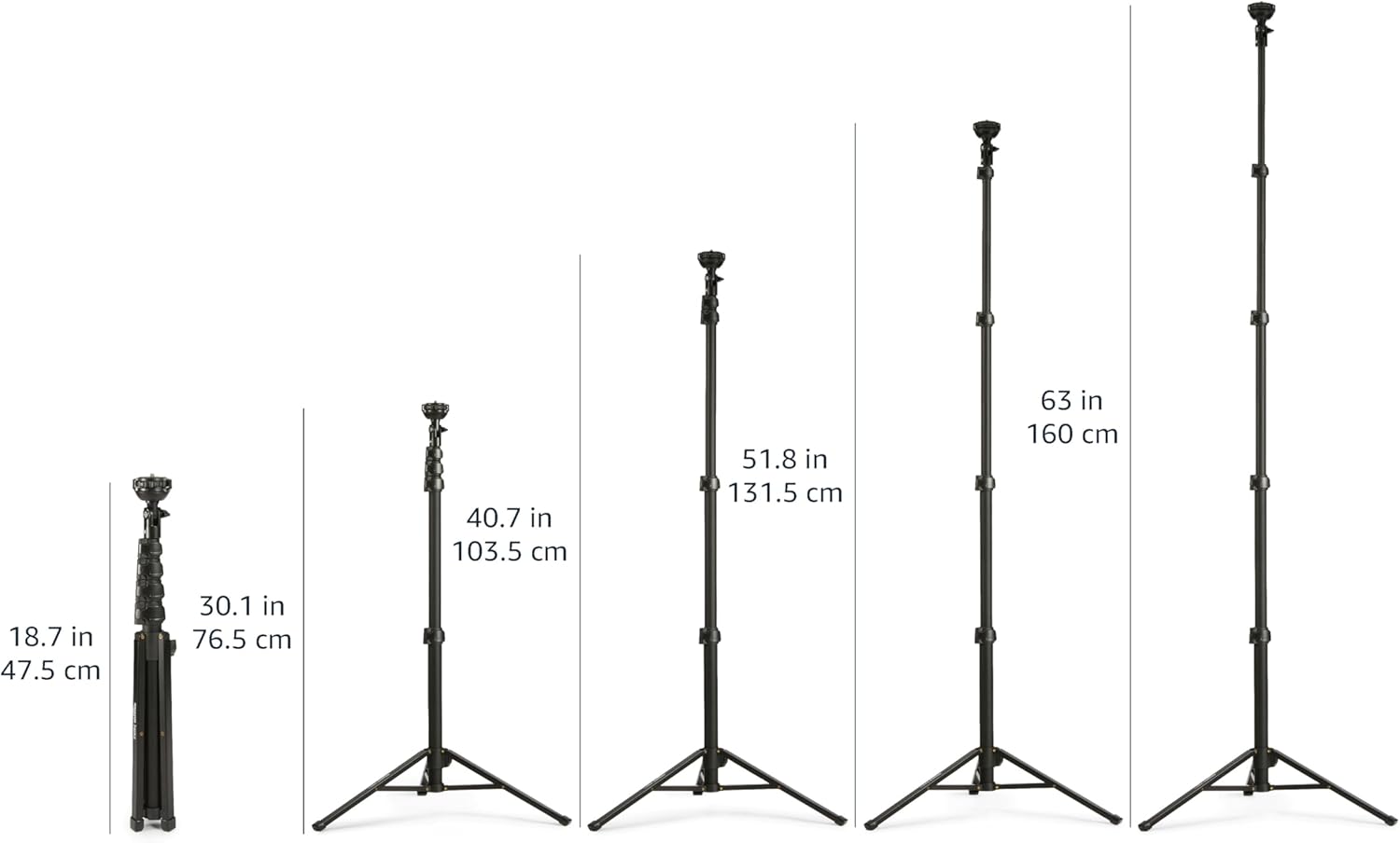 - Extendable pole up to 162 cm / 63 .7 inches makes the tripod ideal for taking selfies, video recording, photography, and live streaming