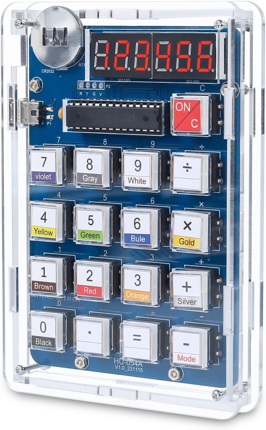 - 【Functions & Features】:(1)USB or button battery powered for greater ease of operation(2)Basic arithmetic operations, with decimal points and negative numbers. And it can be calculated continuously.(3)Measure the resistance value of the four-ring or five-ring resistance, enter the color ring colors in order to obtain the resistance value. This feature is designed to help you calculate resistance values without voltmeter, ideal for those interested in electronic components.