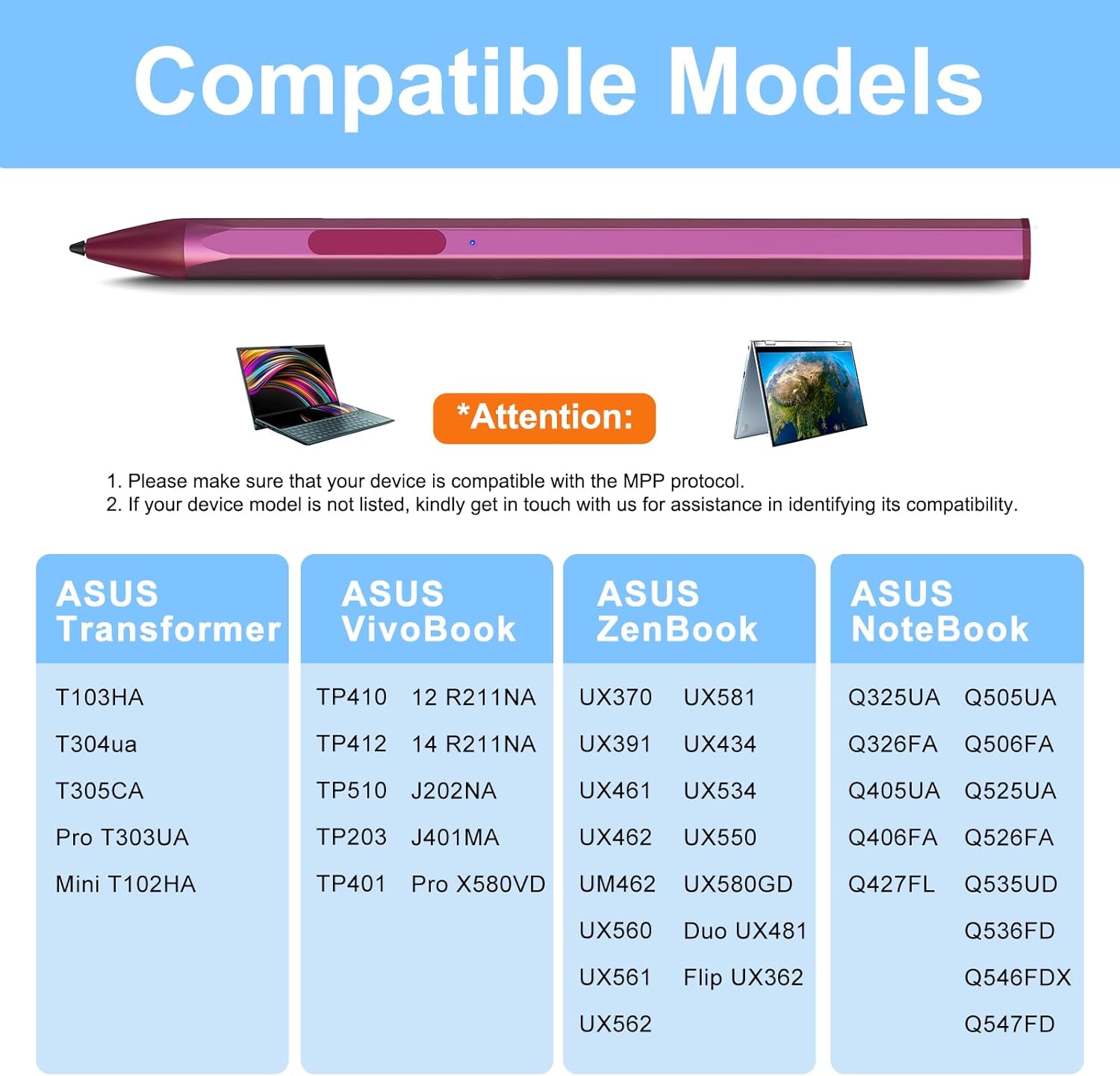 Stylus Pen for ASUS Transformer/ASUS Zenbook/ASUS Vivobook Flip/ASUS Notebook Touchscreen Laptop Tablet Rechargeable MPP 2.0 Tilt Pencil 4096 Pressure Sensitivity Microsoft MPP Protocol, Red