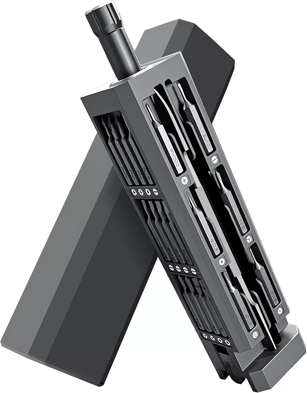 - 【Pop-up Design + Magnetic Body for Convenience】The integrated metal case with a press-to-open mechanism ensures the safety and durability of this compact screwdriver set. The entire body is magnetized, securely holding the bits in place. The bit pattern on the body makes it easy to find the needed bits every time.