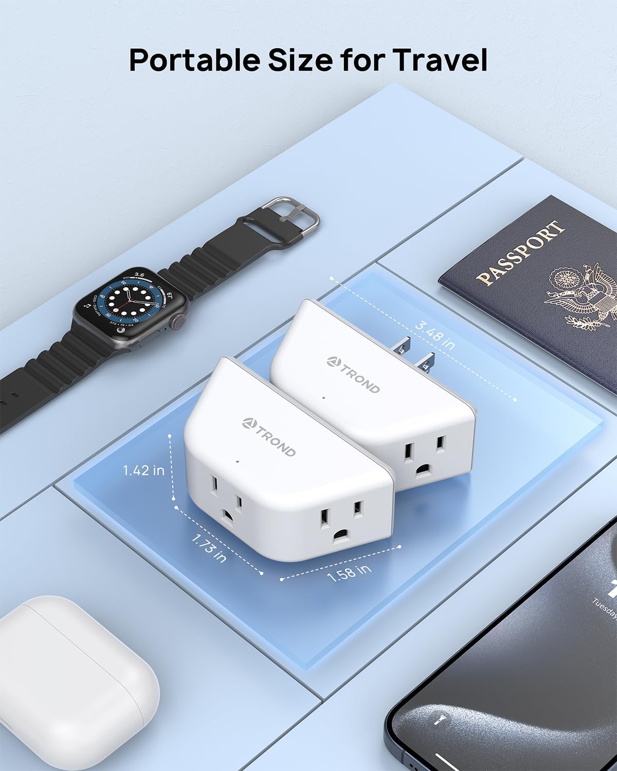 - Compact and Portable: Measuring at just 3.48 x 1.73 x 1.42 inches, the compact size of this outlet extender is perfect for your business trips or travels. It is designed to save space, making it especially suitable for tight spaces such as behind the couch or furniture