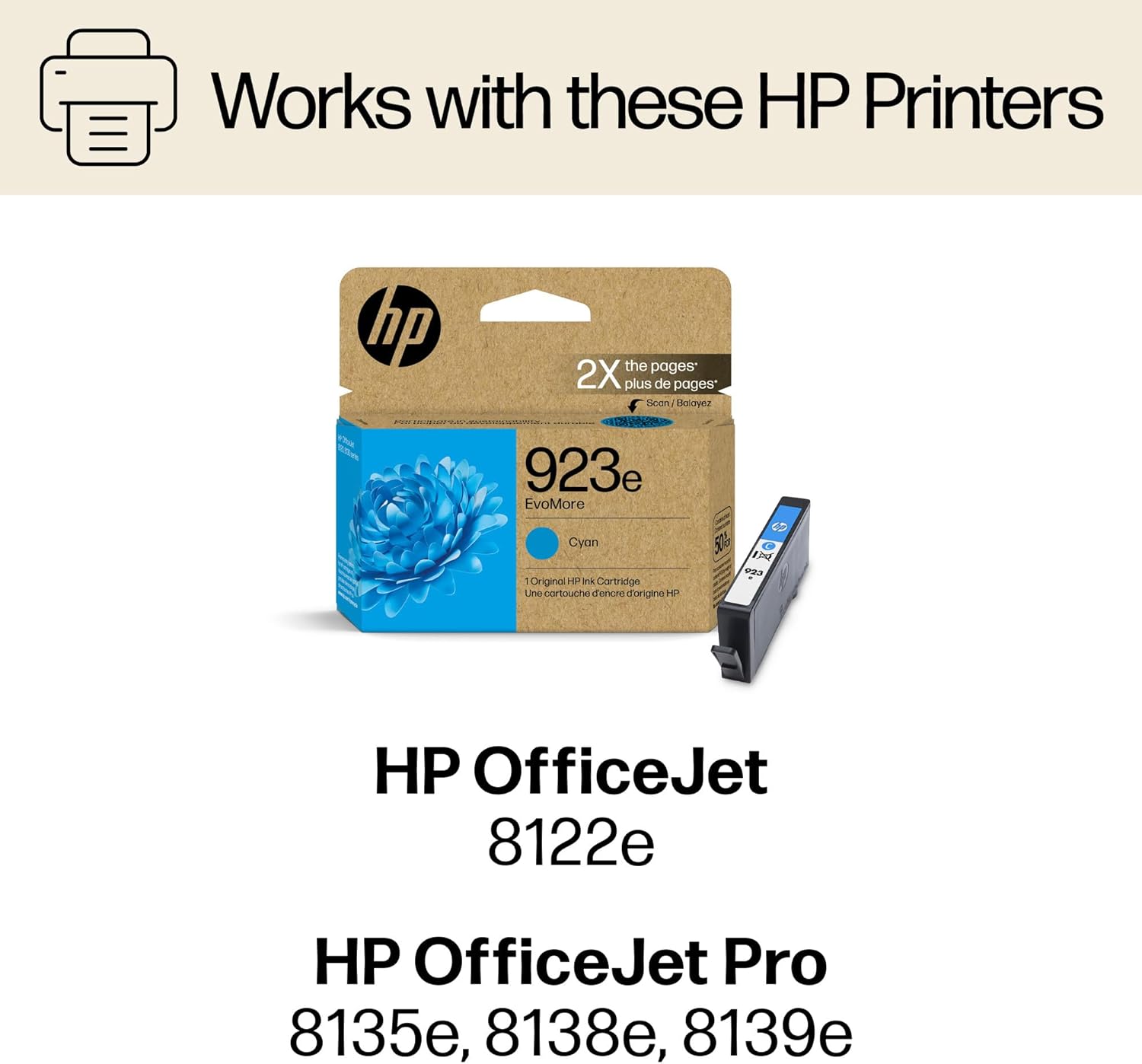 HP 923e EvoMore High Yield Cyan Ink Cartridge | Works OfficeJet 8120 Series, OfficeJet Pro 8130 Series | Carbon Neutral | 4K0T4LN