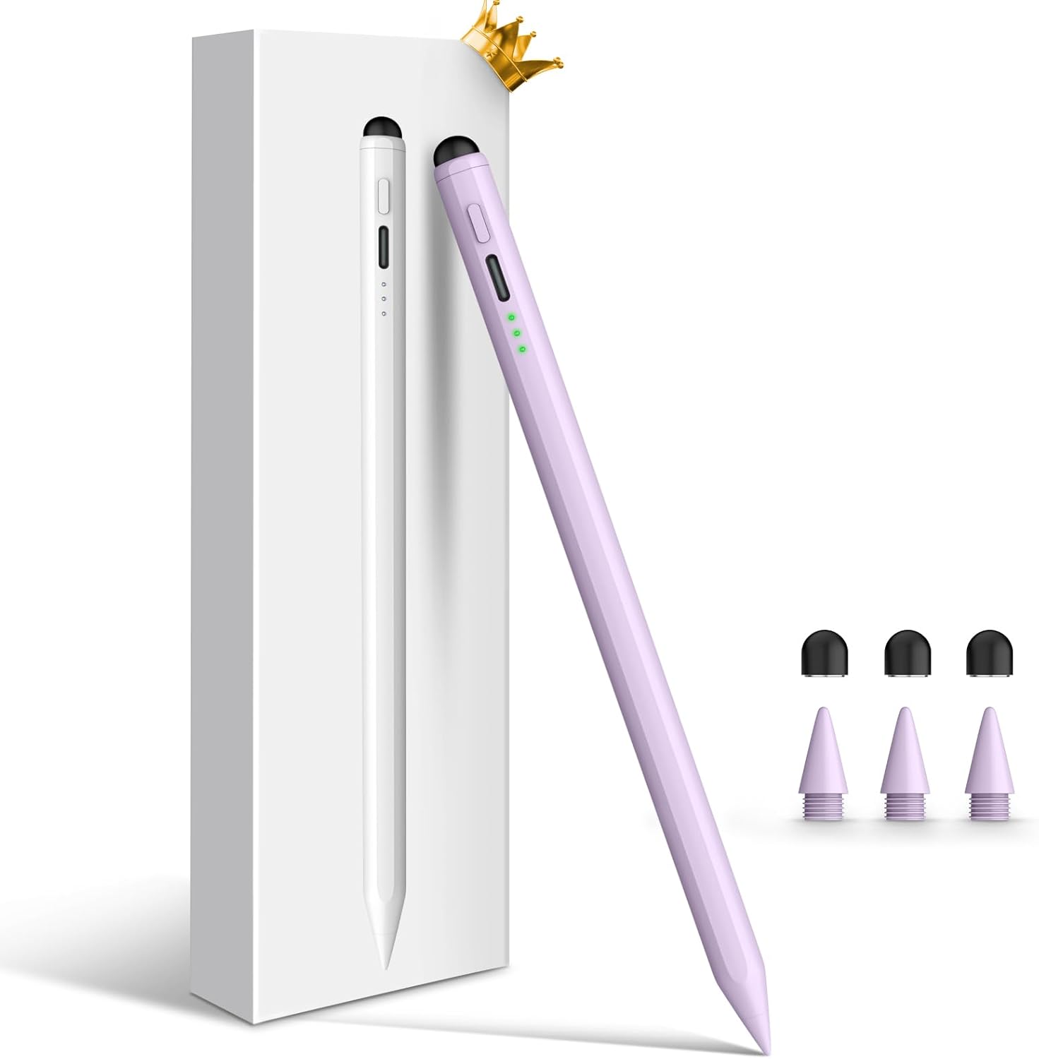 Stylus Pen for iPad, Dual-Tip 13 mins Fast Charge Pencil for Apple, Palm Rejection, Tilt Sensitivity, Compatible w/iPad 6/7/8/9/10, Pro 11/12.9in/M4, Air 3/4/5/M2, Mini 5/6 - Purple