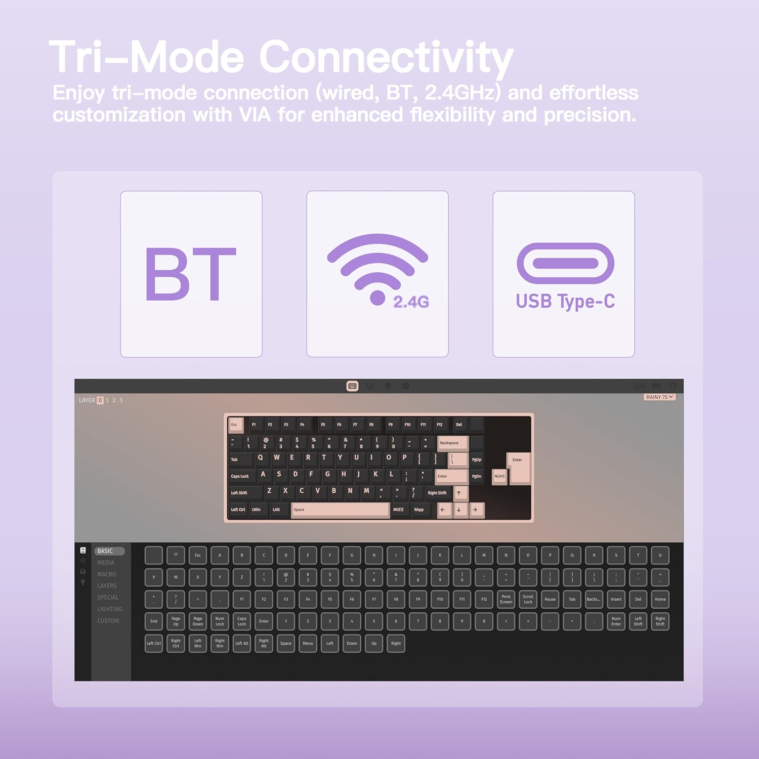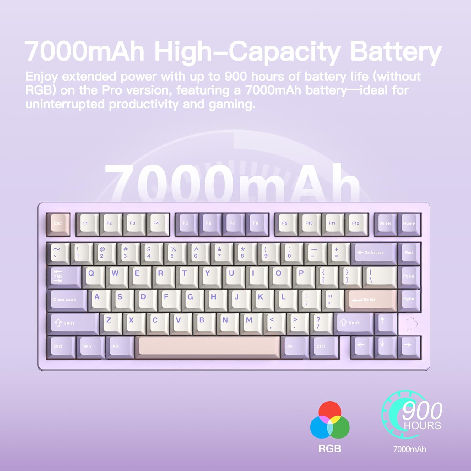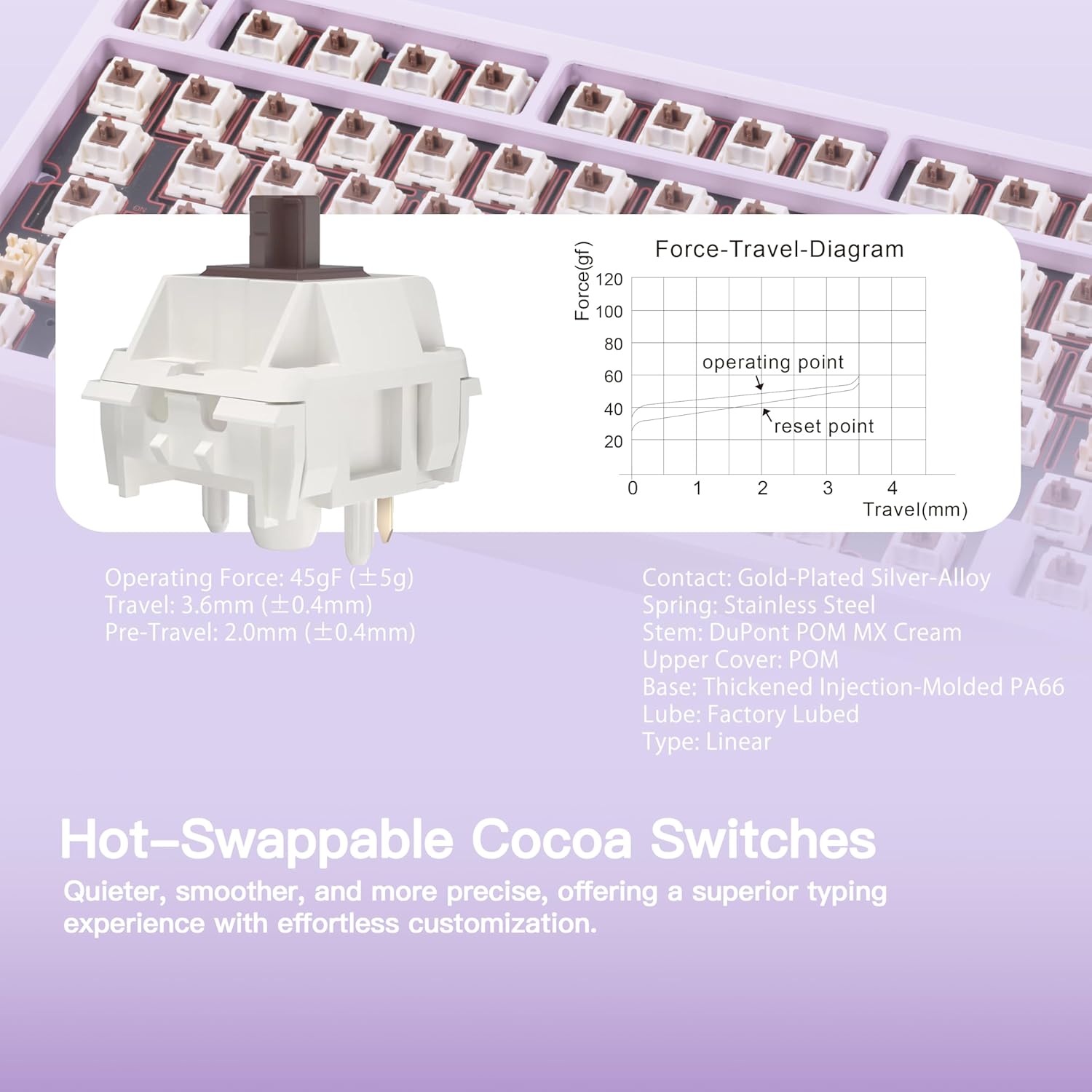 KEEBMONKEY WOBKEY Rainy 75 CNC Aluminum HMX/JWK/Cocoa Switches Triple-Mode Connectivity Mechanical Keyboard with Superior Acoustics, RGB/FR4/Silver SUS304/7000mAh/Cocoa Switch (Pro - Purple)