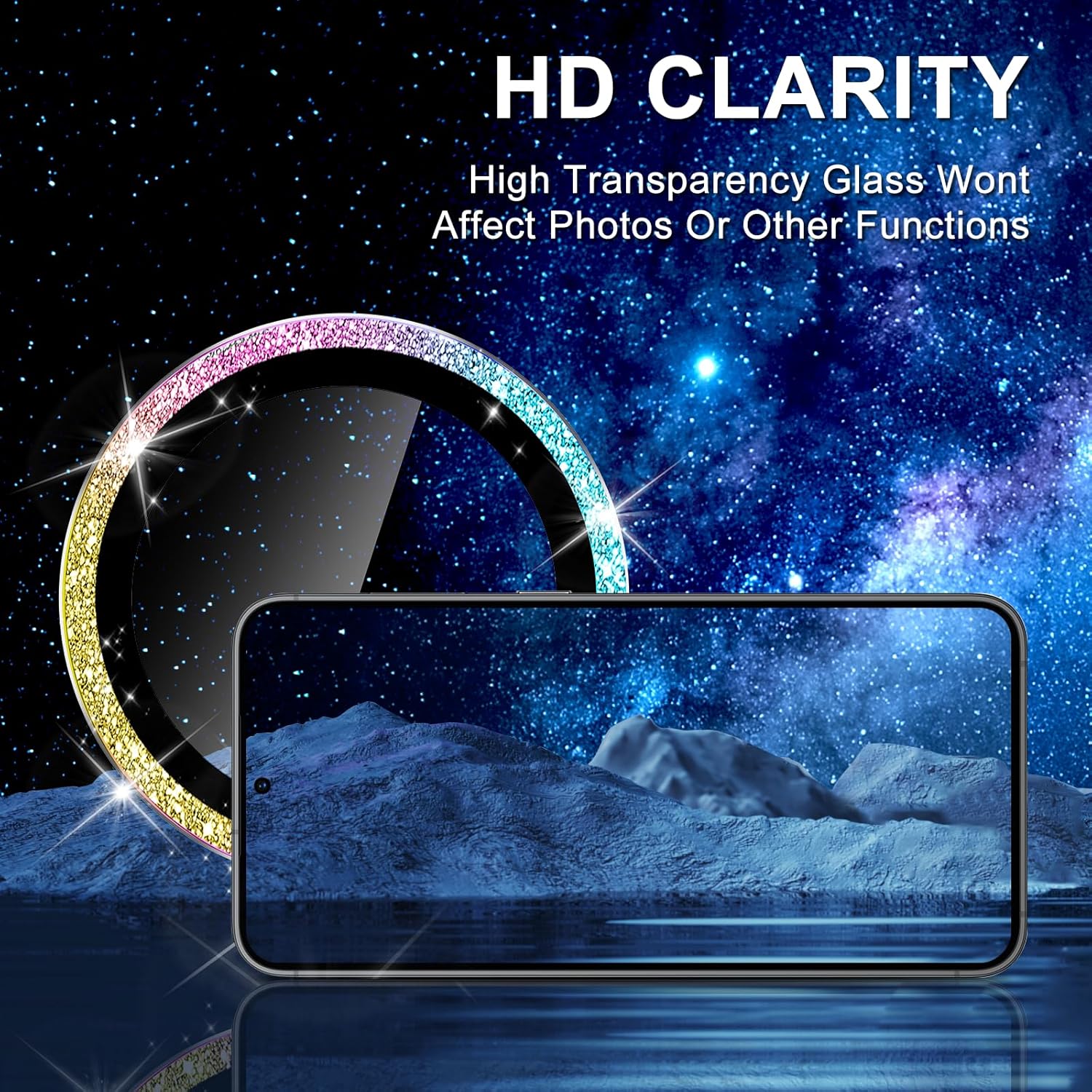 for Samsung Galaxy S24 Camera Lens Protector, Individual Metal Ring Tempered Glass Lens Cover, [Strong Adsorption] Scratch Resistant Ultra-Thin HD Clear Lens Cover, 1 Set-Colorful Sparkly