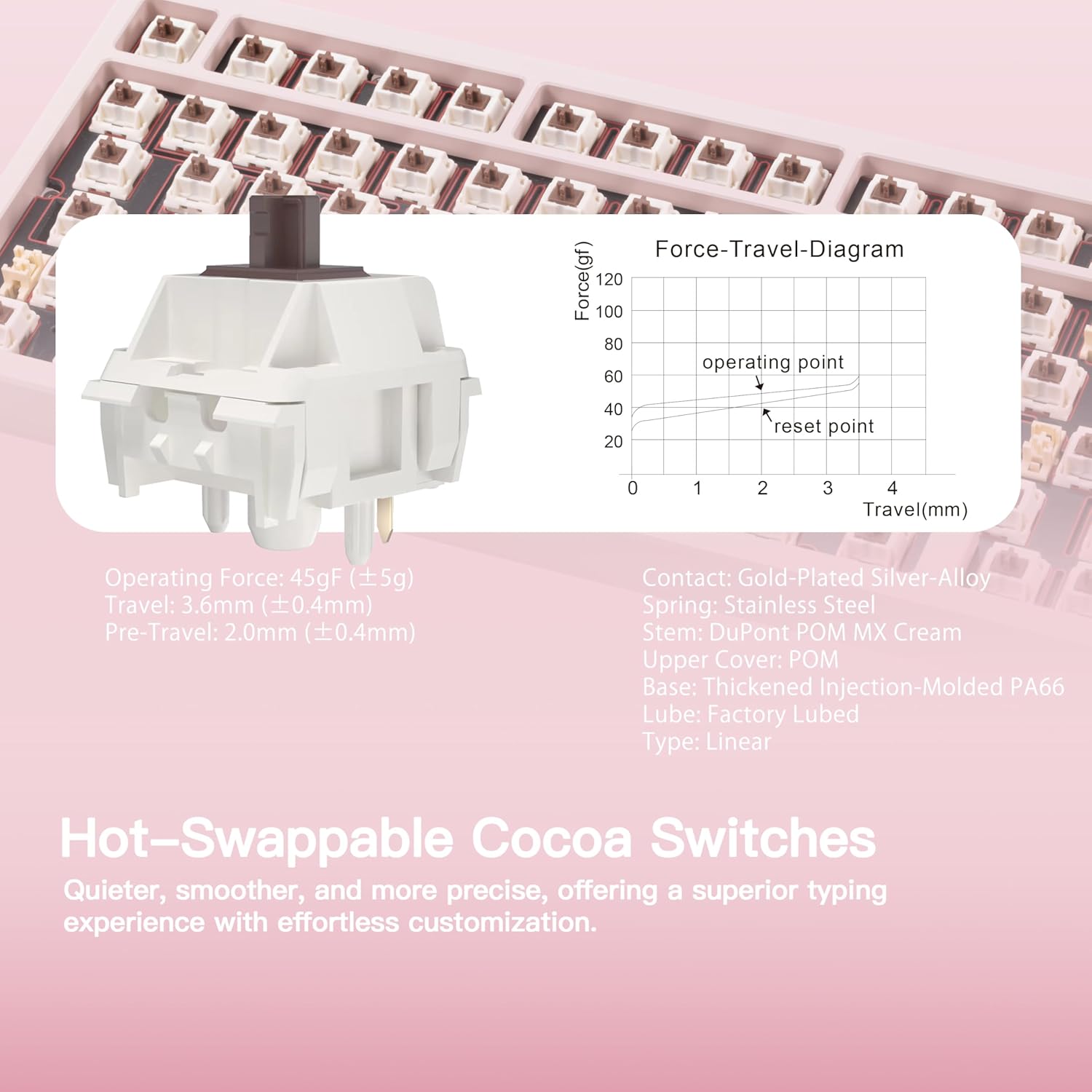 KEEBMONKEY WOBKEY Rainy 75 CNC Aluminum HMX/JWK/Cocoa Switches Triple-Mode Connectivity Mechanical Keyboard with Superior Acoustics, RGB/FR4/Silver SUS304/7000mAh/Cocoa Switch (Pro - Pink)