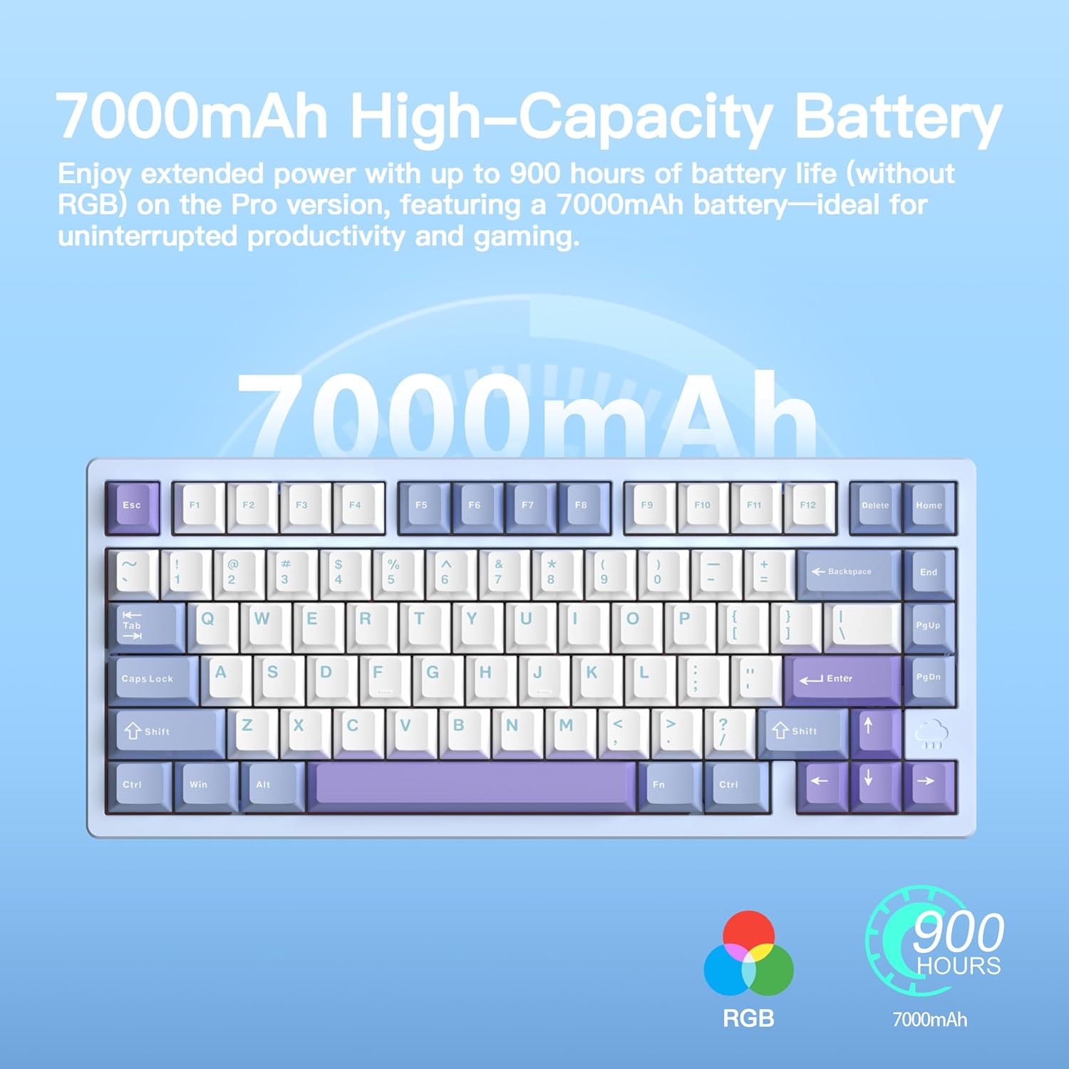 KEEBMONKEY WOBKEY Rainy 75 CNC Aluminum HMX/JWK/Cocoa Switches Triple-Mode Connectivity Mechanical Keyboard with Superior Acoustics, RGB/FR4/Silver SUS304/7000mAh/Cocoa Switch (Pro - Blue)
